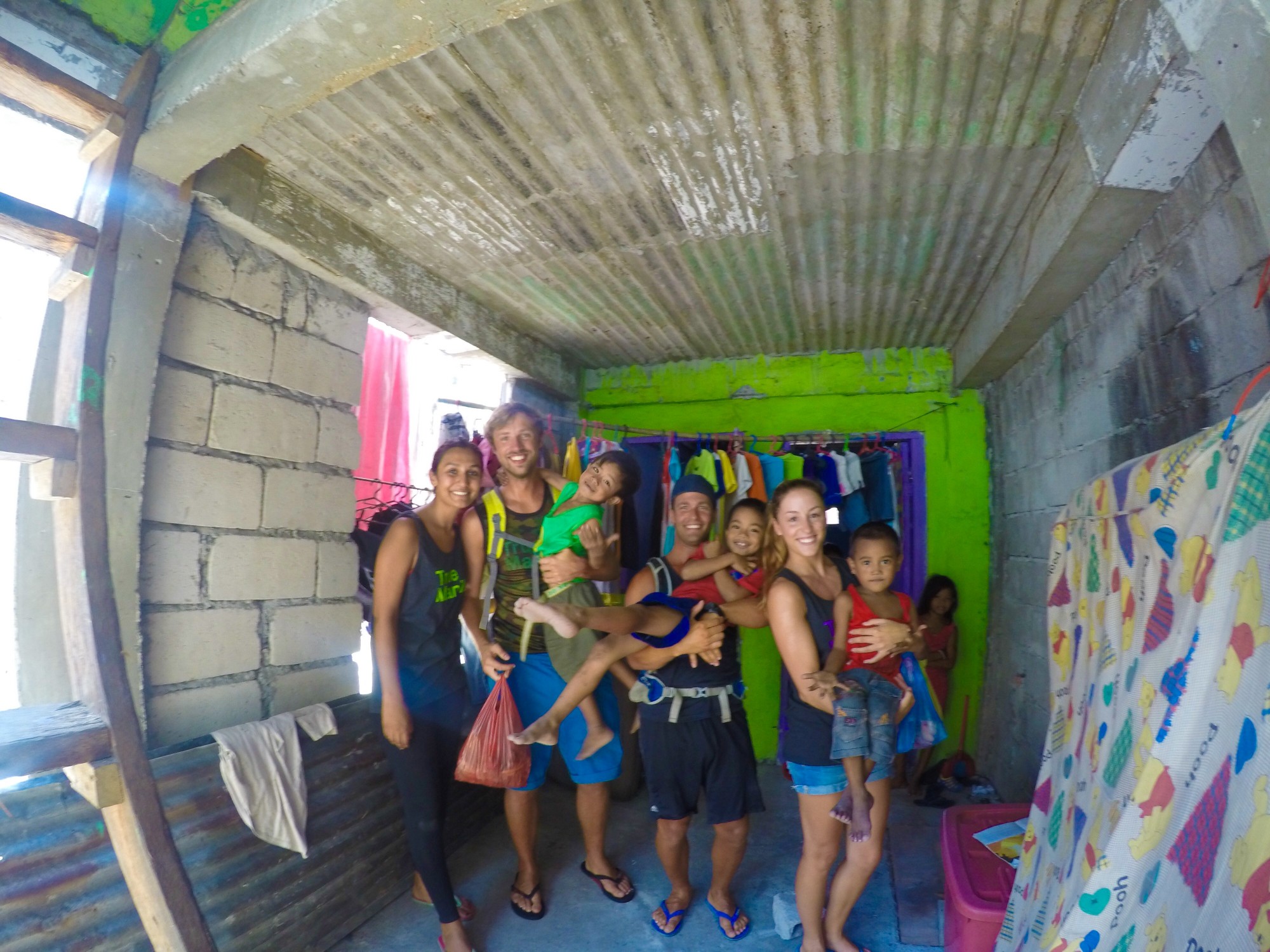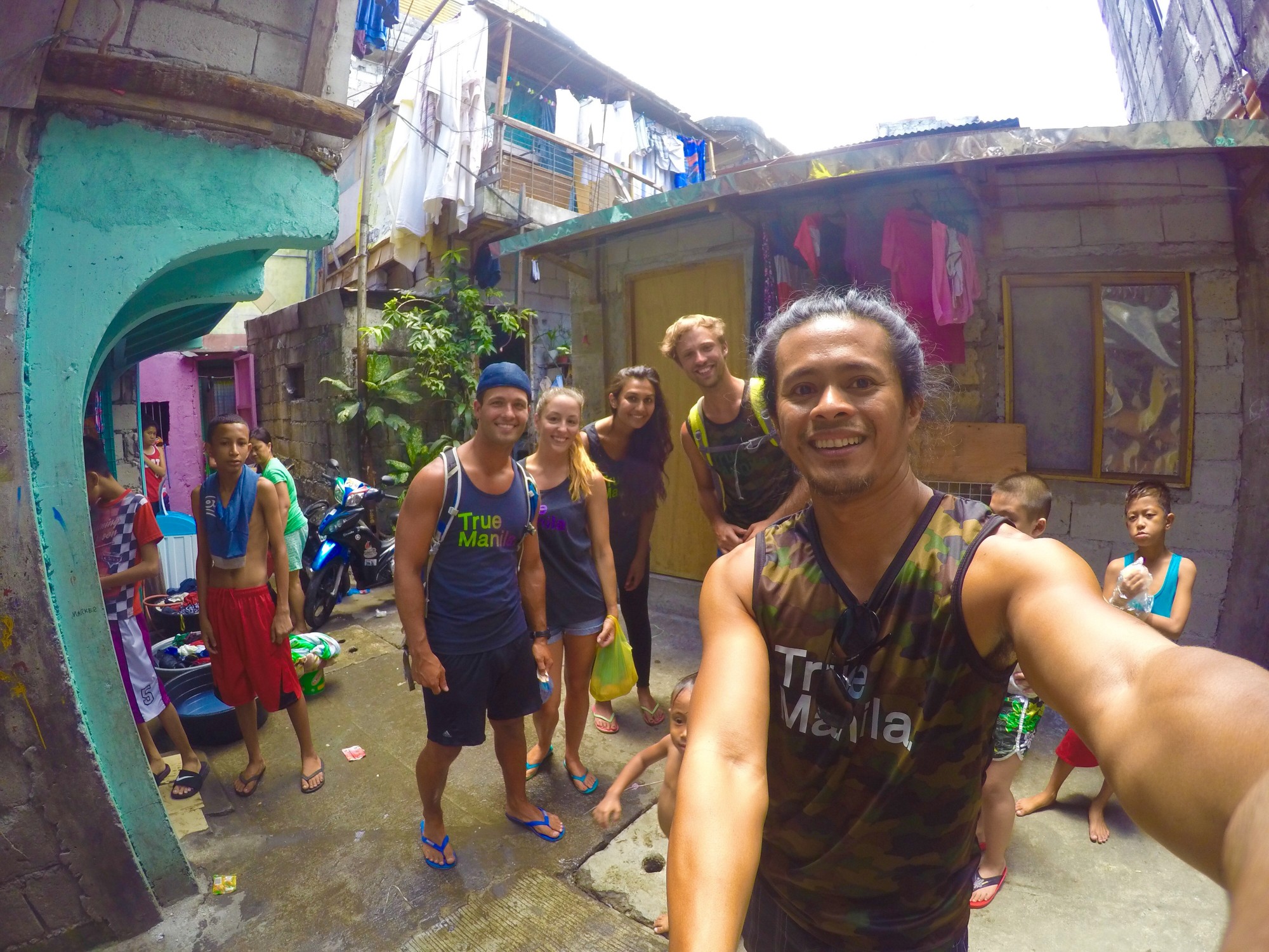 « Comme la fin de notre voyage arrivait rapidement, il ne nous restait plus beaucoup de temps pour faire cette activité qui nous tenait à cœur. Nous nous sommes informés auprès d’employés des auberges de jeunesse de la région pour savoir s’il y avait un endroit où l’on organisait des journées de la sorte. On nous a répondu qu’il y avait bien quelqu’un, un homme qui se nommait Edwin, mais qu’on devrait entrer en contact avec lui pour savoir si c’était possible car c’était la semaine sainte et, en plus de ses huit emplois réguliers, cet homme offrait bénévolement aux touristes la chance de vivre l’expérience qu’il a décidé d’appeler “True Manila”. Après vérification, il nous a contacté pour nous annoncer que nous allions pouvoir passer la journée avec lui le lendemain. Nous étions enchantés ! Le moment arrivé, il est venu nous rejoindre, puis, en compagnie d’un couple qui s’est joint à nous, nous sommes partis en direction d’un quartier défavorisé de Manille. Nous avions à peine posé un pied à terre que déjà les enfants s’empressaient de venir à notre rencontre, nous tendant les bras, tout sourires… J’ai alors eu droit à ma première “poussière dans l’œil” de la journée… Nous avons par la suite eu la chance d’entrer dans l’intimité des locaux en visitant leurs maisons, dans lesquelles on comptait d’ailleurs un minimum de 5 enfants par famille. Partout nous étions reçus avec le sourire, même que parfois, on nous remerciait de notre visite. Incroyable non ? Ensuite, notre guide nous a fait entrer dans une petite maison de béton où il nous a raconté l’histoire de cinq enfants qu’il avait trouvés dans la rue, orphelins. Ces enfants, à qui il avait trouvé des familles d’accueil à maintes reprises, lui étaient toujours renvoyés au bout de quelques temps, car ceux-ci étaient trop turbulents. Au bout d’un certain temps, la mère des enfants a refait surface, bien décidée à prendre soin de ses enfants. Edwin a alors décidé d’essayer d’amasser des fonds et il a pu en récolter suffisamment pour leur construire une toute petite maison, où ils allaient pouvoir vivre avec leur mère. Une fois l’histoire terminée, Edwin nous a dit : “Vous vous trouvez présentement dans cette maison et voici les cinq enfants et leur mère.” C’est alors que tout doucement, une porte au fond de la pièce s’est ouverte et les cinq enfants sont sortis, s’avançant vers nous. J’ai senti une vague d’émotion monter en moi et en me penchant pour prendre le premier enfant dans mes bras, j’ai éclaté en sanglots. Après avoir passé un moment avec eux, nous sommes partis en direction du marché, pour acheter des pommes que nous allions remettre aux enfants. À notre retour, Edwin nous a amenés dans la rue pour faire la distribution des pommes. Je ne comprends pas encore comment ça s’est passé, ni d’où ils sont arrivés, mais dans l’espace d’à peine quelques minutes, des centaines d’enfants se sont rués vers nous. Edwin a fait asseoir les enfants en “rangs d’oignions”, la tête baissée, une main au-dessus de la tête. Certains étaient très assidus, patients, fermant très fort leurs petits yeux, tandis que d’autres, un peu plus inquiets, ouvraient l’œil de temps à autre pour voir si leur tour arrivait bientôt. Une fois la collation terminée, la récréation a commencé. Les enfants se sont mis à nous grimper dessus, voulant tous se faire prendre. À un certain moment, Maxime avait trois enfants sur lui et un quatrième tentait de lui monter dessus ! Nous n’avons évidemment pas amélioré la condition de ces enfants en faisant ce qu’on a fait, mais si nous avons pu leur apporter un peu de bonheur, un peu de soleil dans le cœur, alors on se dit que c’est déjà ça. Nous n’avons pas changé la vie de personne ce jour-là… Excepté la nôtre. »