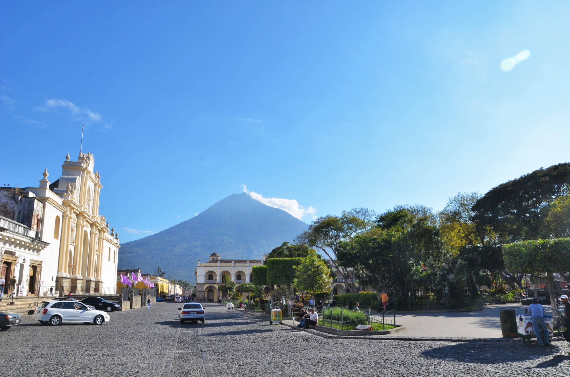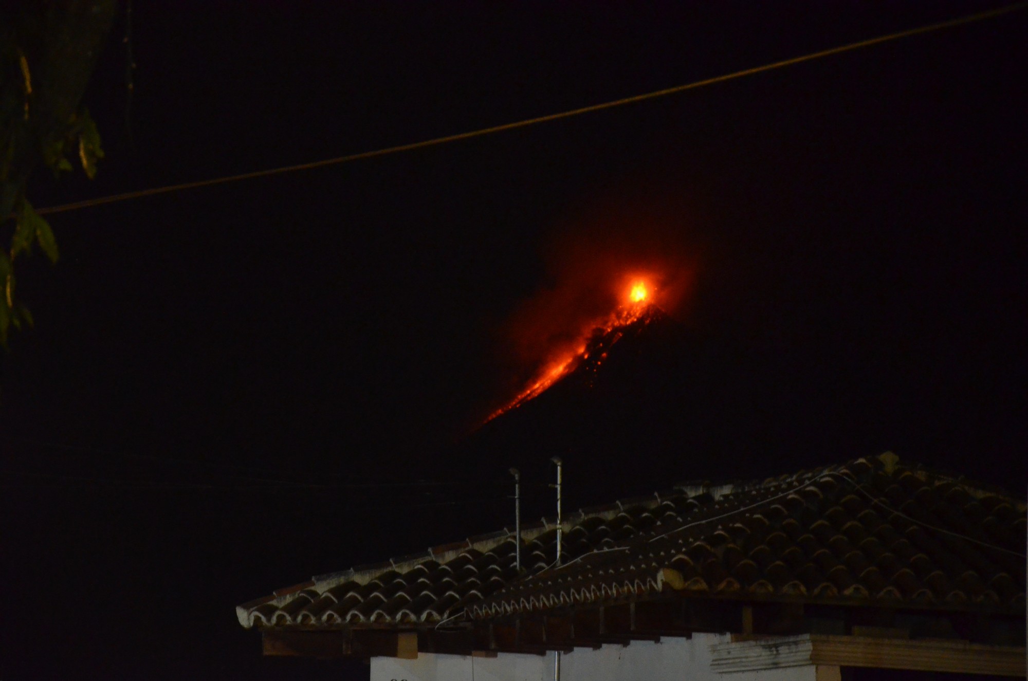 Trois volcans entourent la ville : Acatenango, Fuego et Agua. Il y a aussi l’actif Pacaya à proximité où vous pourrez vous griller une guimauve sur d’anciennes coulées de lave. Les hôtels et agences de voyage y organisent des tours, de quoi vous occuper durant une bonne journée ! La chance fut avec nous, car, dès notre première nuit à Antigua, le volcan Fuego situé à 45 km de la ville s’est mis dans tous ses états. Coulée de lave, explosions, grondements tout au long de la nuit et tremblement de terre furent au rendez-vous !