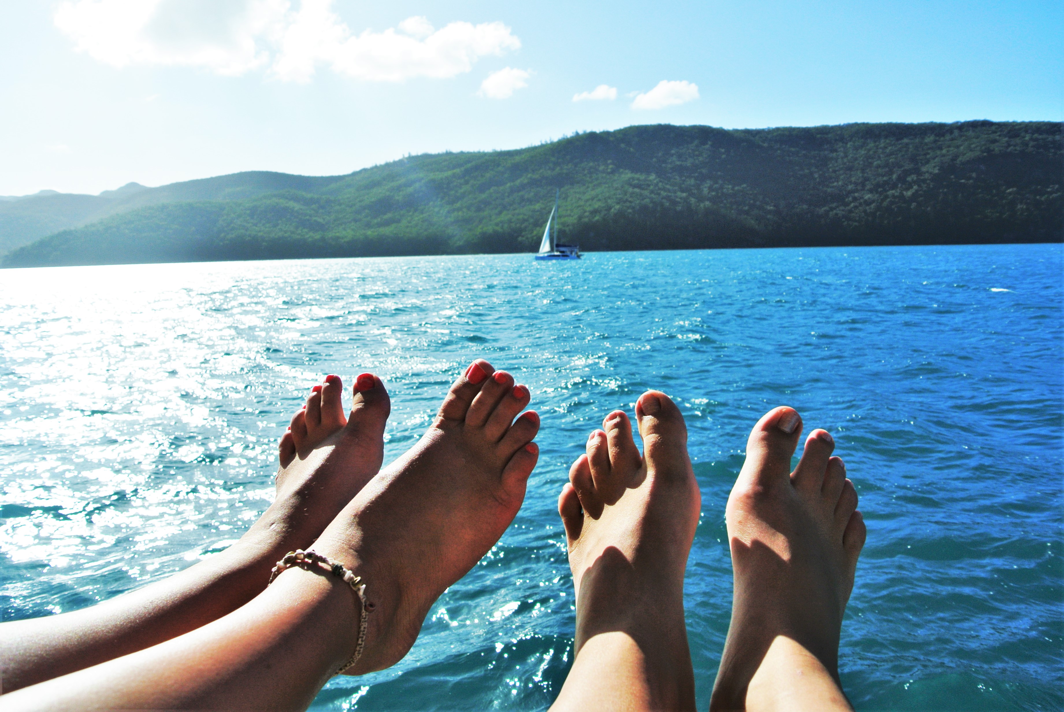 Le voilier a repris le large de plus belle sous les rayons du soleil levant. C’est les pieds dans le vide à admirer la splendeur de l’océan que nous avons dégusté notre petit-déjeuner. Tandis que nos hommes aidaient l’équipage à hisser les voiles, Claudia et moi avons profité du chaud soleil tout en relaxant au rythme des vagues. Cette journée était beaucoup plus concentrée sur des activités nautiques. En effet, le premier arrêt fut à Blue Pearl Bay à Hayman Island, un joyau de la Grande Barrière de corail où nous avons fait de la plongée en apnée parmi des jardins de coraux. L’un des membres de l’équipage se promenait en bateau pour attirer une grande variété de poissons à se joindre à nous grâce à de la nourriture.