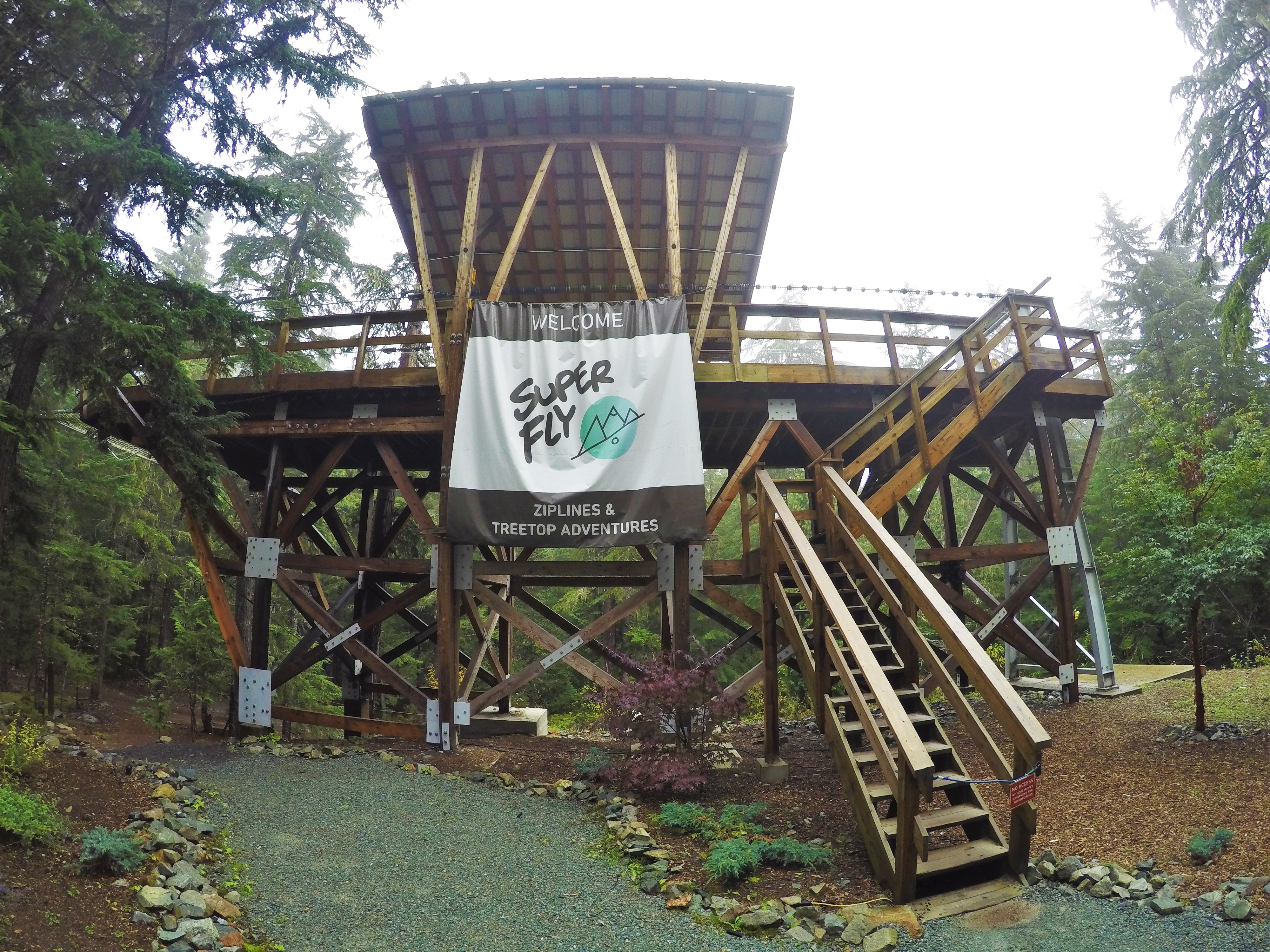 S’il y a bien une activité que je voulais absolument faire lors de mon séjour à Whistler, c’est bien de m’envoler entre les montagnes grâce à Superfly Ziplines! Chaque jour, j’ai regardé le radar de la météo pour savoir précisément entre quelle et quelle heure la pluie cesserait pour un moment. Malgré la présence des nuages et l’humidité glaciale qu’il faisait cette journée-là, c’est avec bonheur et détermination que je me suis aventurée parmi les montagnes sauvages de Whistler. Dès notre arrivée, l’aventure était au rendez-vous. Nous avons débuté notre escapade en montagne par une balade rocambolesque en buggy traversant ainsi des troues de boue tout en profitant d’un paysage de plus en plus extraordinaire grâce à l’altitude acquise par notre ascension vers le haut de la montagne.