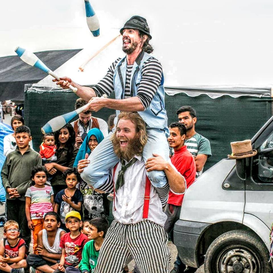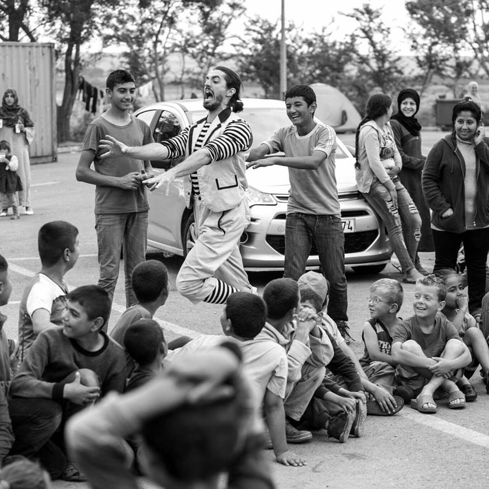 «La situation là-bas, très complexe à plein de niveaux, me touchait beaucoup. Je n’avais jamais vu d’enfants aussi tristes et démotivés. Spontanément, je me suis improvisé clown. J’allais à la rencontre des gens, juste comme ça. J’essayais de leur faire passer un bon moment et… ça marchait! C’était magique et vraiment l’fun. Je réussissais à mettre des étoiles dans des yeux qui n’en avaient jamais. Je me suis rendu compte que le clown pouvait avoir un impact positif et significatif sur les autres. Le clown qui fait du bien, le clown qui redonne espoir. Pis sans espoir, y’a rien. C’est là que j’ai commencé à être clown et à rêver d’un clown humanitaire.»