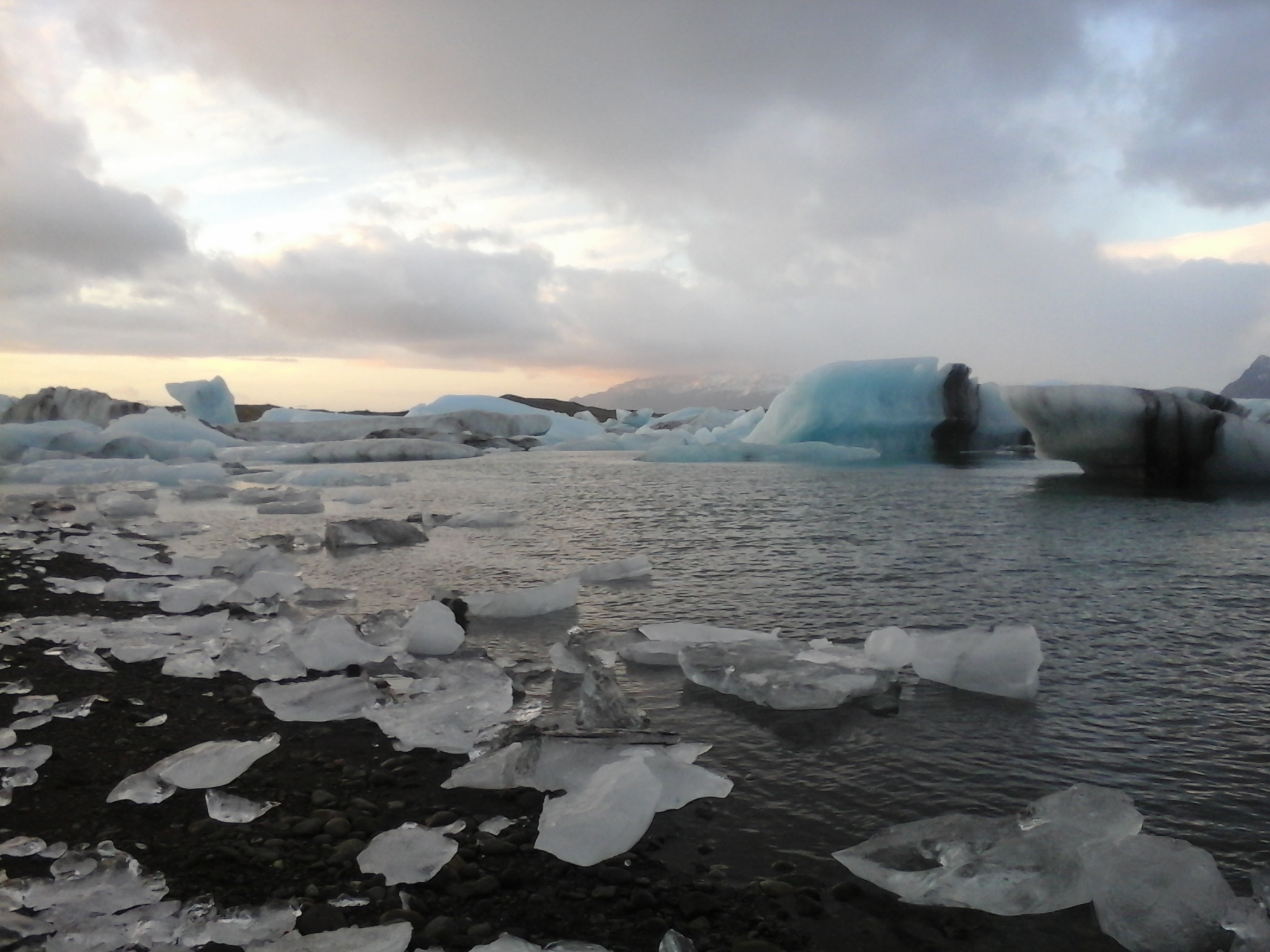 Jökulquoi ?? Jökulsárlón est un immense lagon d’Islande où des morceaux de glaciers se détachent et se jettent dans l’océan Atlantique Nord. Nous nous y sommes rendues un matin de novembre. Nous avions pris la route depuis Vik (où se trouve l’unique auberge de jeunesse des environs) assez tôt dans la matinée pour pouvoir arriver à cet endroit au lever du soleil. Jackpot ! C’est surement, de loin, le meilleur des moments… nous nous sommes retrouvées comme suspendues dans le temps, les glaciers glissant doucement sur la surface de l’eau dans un froid silencieux où retentissent parfois quelques craquements de la glace en mouvement. Les couleurs vous transportent, vraiment, je ne veux pas trop me la jouer poète, mais le rougeoiement du soleil levant qui se reflète sur le bleu glacé des icebergs est à vous couper le souffle ! D’ailleurs, personne n’osait dire un mot, nous étions tous là, à observer ce véritable spectacle.