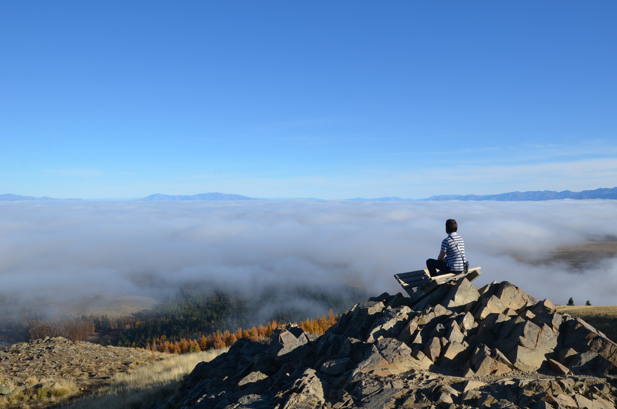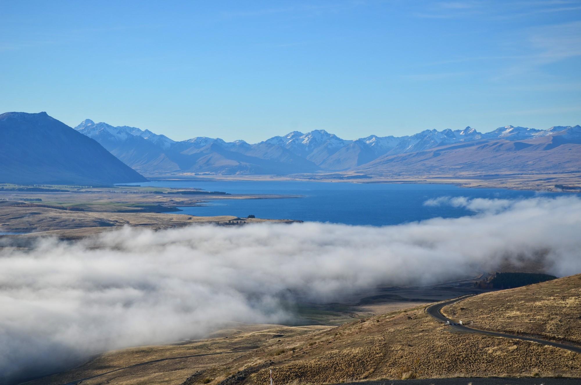 Pour voir l’ampleur et contempler le lac Tekapo de haut, rien de moins qu’une petite randonnée. L’ascension du Mount John Summit débute juste à côté des Tekapo Springs et, de là, il faut compter environ 1h30 aller-retour. C’est une randonnée assez facile pour les gens de tous les niveaux. Une fois là-haut, vous aurez une superbe vue sur le lac Tekapo et ses environs. Nous avons été super chanceux, car, quelques minutes après notre arrivée, l’épais brouillard était de retour et s’est mis à doucement recouvrir tout le lac de sorte que notre descente s’est faite dans les nuages. Il vaut également le coup de faire un petit détour du côté du Mount John University Observatory pour avoir un autre point de vue sur le lac et, par temps clair, apercevoir le mont Cook.