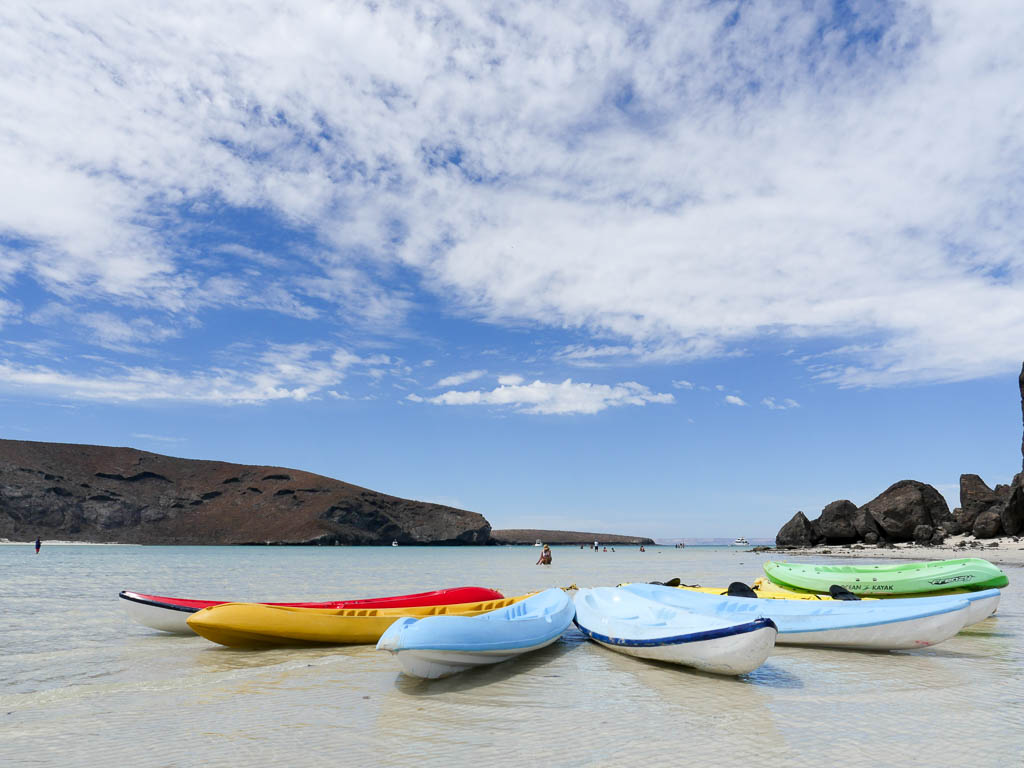 La baie, située dans la mer de Cortez, s’étend sur environ un kilomètre et est tellement peu profonde qu’il est possible, même à marée haute, de la traverser sans perdre pied. À marée basse, avec quelques dizaines de centimètres de profondeur, elle devient une énorme pataugeoire d’eau chaude. Parfaite pour la pratique de la planche à pagaie et ou du kayak, son eau translucide nous permet d’y observer de petites raies, des crabes et quelques variétés de poissons colorés.
