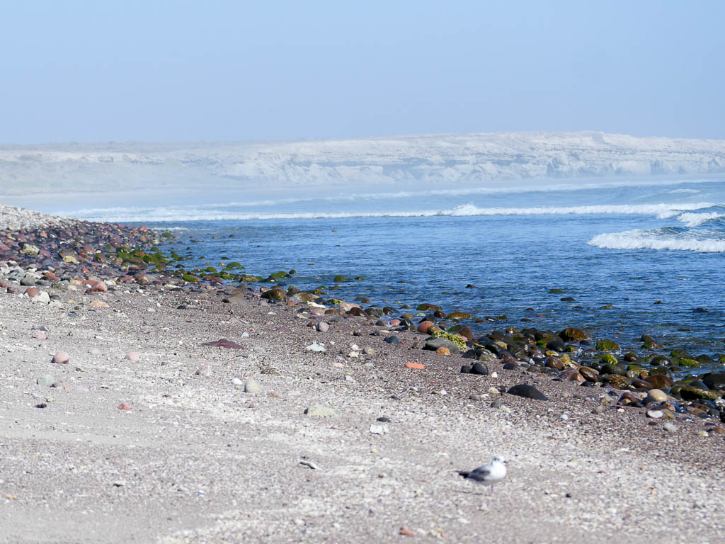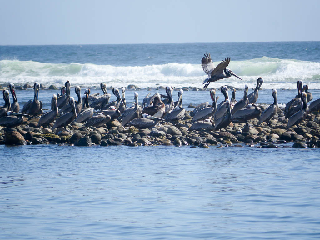 Des tonnes de coquillages, de fortes vagues et une mer assez fraîche pour refréner notre envie d‘y mettre plus que les pieds. C’est que nous sommes habitués à la chaleureuse mer de Cortez ! L’endroit est reconnu pour le surf, mais, lorsque nous y étions, nos seuls voisins étaient les pélicans.