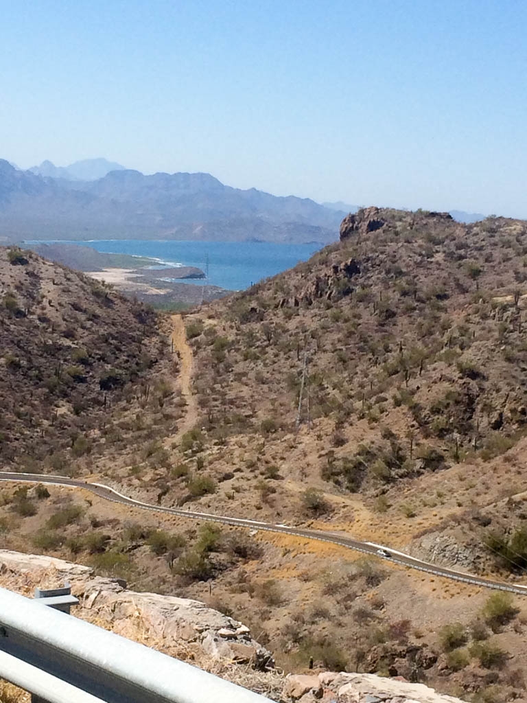 Pour ceux qui apprécient les plages, c’est la région ! Retour sur la mer de Cortez pour des kilomètres de petites baies à découvrir. Nous nous sommes posés à Playa El Requeson, une pointe de sable où il est possible de traverser sur une île à marée basse. Eau turquoise et limpide. Des mangroves couvrent une partie de l’île et sont peuplées de poissons.