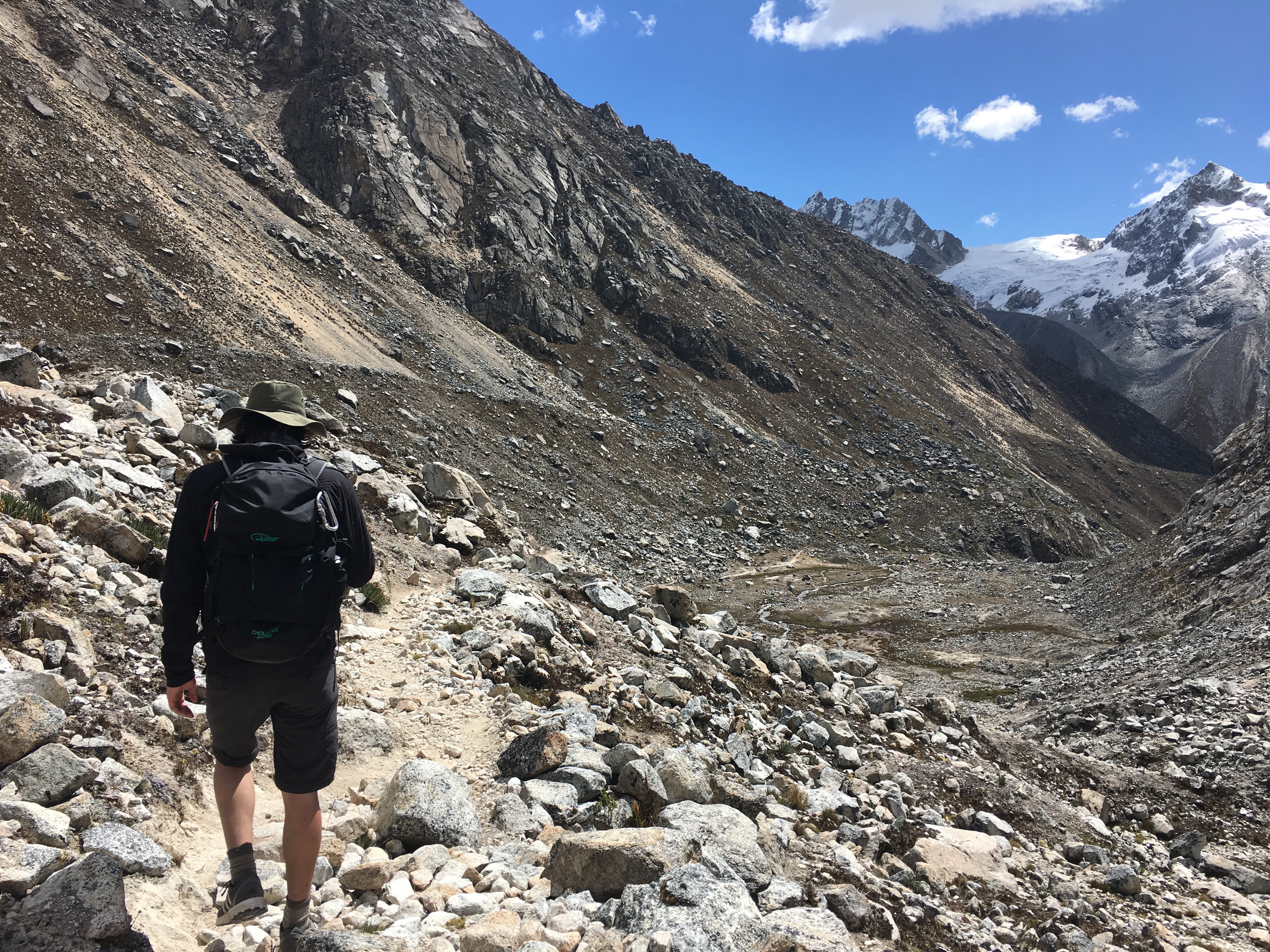 Un taxi vient me chercher en matinée à Huaraz et me dépose au sommet du village Pashpa environ 1h plus tard. Si je me souviens bien, cela prend environ 5h de marche pour se rendre au refuge Ishinca, incluant la pause dîner. L’endroit est super paisible, j’y ai à peine croisé 5 randonneurs en montant. Ça change des endroits bondés comme le Machu Picchu disons! En plus, le chemin n’est pas difficile (beaucoup moins que la laguna 69), quoi que c’est une longue randonnée alors c’est épuisant à la fin.