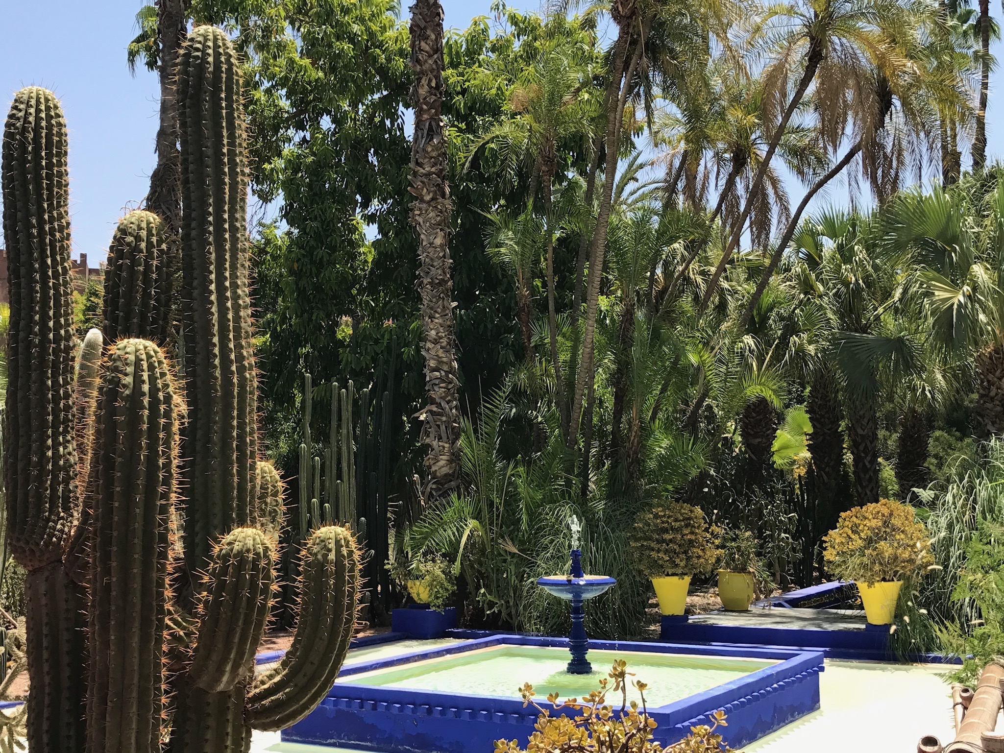 Oasis botanique et artistique en plein cœur de la ville, le jardin Majorelle porte le nom de l’artiste peintre français Jacques Majorelle, fondateur de cette palmeraie où s’entrecroisent cactus, bougainvillées, jasmins, palmiers, bassins d’eau, nénuphars, lotus, bambous, fontaines et pergolas au bleu cobalt (le bleu Majorelle). Appartenant aujourd’hui à la Fondation Pierre Bergé – Yves Saint Laurent, le jardin accueille, depuis octobre 2017, le musée Yves Saint Laurent Marrakech. Les cendres du célèbre créateur ont d’ailleurs été dispersées dans la roseraie du jardin. Ayant visité Marrakech en juillet, je n’ai pas eu la chance d’apprécier le musée, mais je compte bien y revenir!