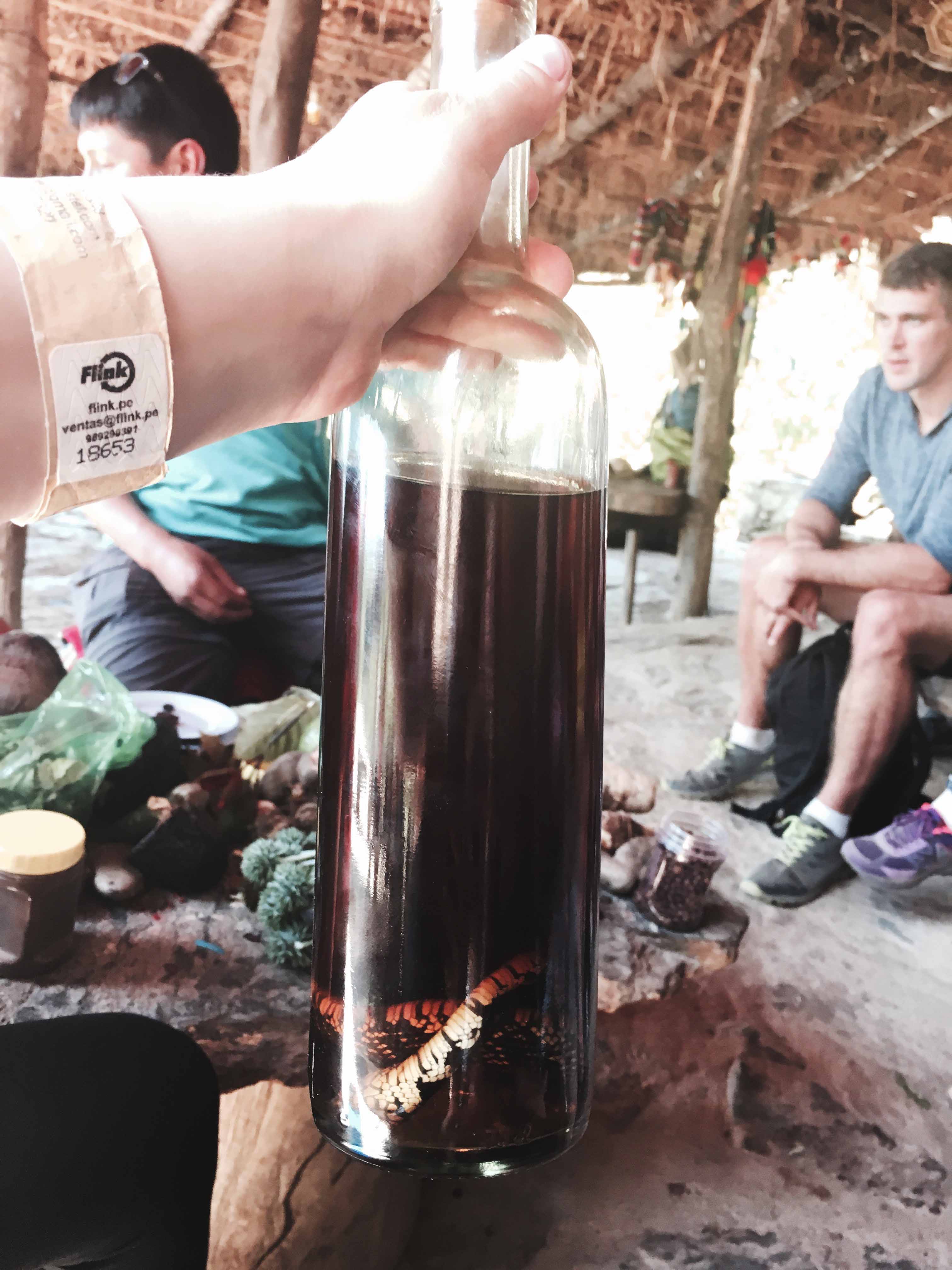 - Randonnée de 7-8h dans la jungle, avec un arrêt bien spécial dans une maison de singes où je me suis fait un petit ami coati trop mignon et où on a dégusté du cacao et de la Inka Tequila (il y avait vraiment un serpent dans la bouteille… ayayaye)