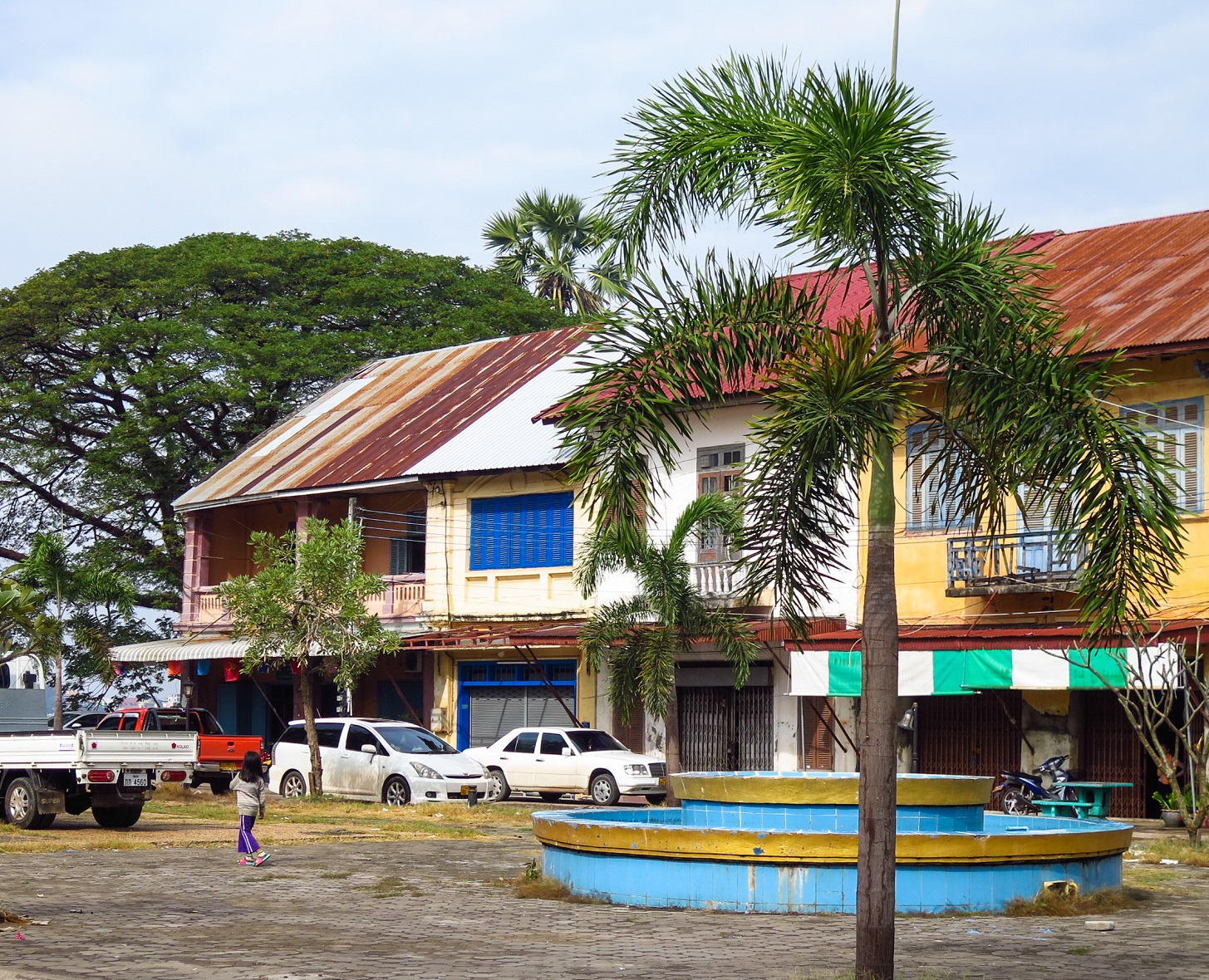Les vols internationaux atterrissant directement au pays du million d’éléphants sont plutôt limités. Nous avons donc commencé notre périple à Bangkok, d’où nous avons pris un vol vers Nakhon Phanom avec Nok Air. De là, nous avons pris un songthaew jusqu’au terminal d’autobus afin de nous rendre à Thakhek. Tout cela se fait très bien en une journée et nous sommes arrivés à Thakhek juste à temps pour l’apéro. J’étais déjà allée au Laos à de nombreuses reprises entre 2003 et 2010, mais toujours au nord. J’ai vu le tourisme s’y développer à vitesse grand V et j’avais peur d’être déçue du Laos que j’allais retrouver. Au contraire, aussitôt la frontière traversée, j’ai tout de suite senti le contraste énorme avec la Thaïlande, pourtant juste de l’autre côté du Mékong, et je me suis vite rappelée ce que j’aimais tant dans ce pays : son calme et son authenticité. Thakhek est une petite bourgade tranquille où il y a à peine quelques restaurants touristiques et quelques hôtels, mais où l’on sent surtout que l’on se plonge dans un monde au rythme bien différent du nôtre. Il faut donc en profiter pour s’imprégner de l’atmosphère en se baladant tranquillement et en admirant l’architecture marquée par le passage des Français à l’époque de l’Indochine.