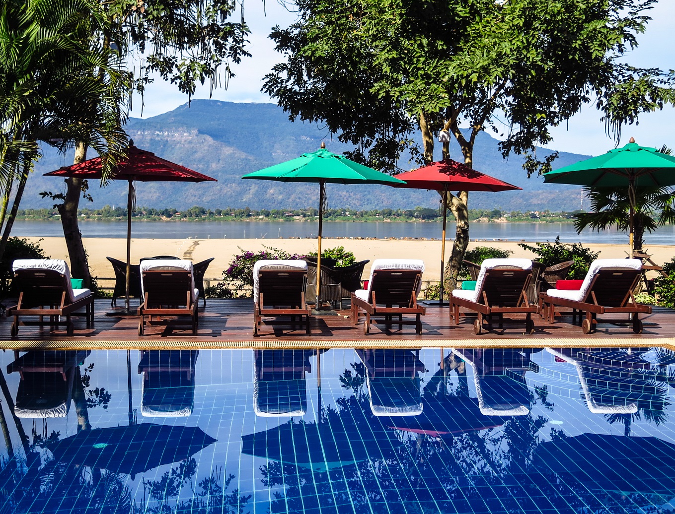 Après un trajet de bus épique, c’est à dire interminable et embarquant une quantité de gens faramineuse, nous sommes finalement arrivés dans la région de Champasak. En guise de cadeau de Noël, mon copain et moi avions décidé de nous payer un petit luxe en résidant à La Folie Lodge sur l’île de Don Daeng. Il faut savoir que le lodge compte une vingtaine de chambres hors de prix avec vue sur le Mékong, ainsi que deux chambres abordables situées dans le jardin. Nous avons opté pour cette dernière option et pouvions tout de même bénéficier de la vue à partir du restaurant alors c’était parfait. L’île de Don Daeng est une île au milieu du Mékong où il est possible de se rendre uniquement en bateau et où il est extrêmement agréable de se balader à vélo. Elle est située en face de Champasak alors, si vous décidez plutôt de vous poser dans cette séduisante localité, je vous recommande fortement d’aller passer au moins une demi-journée à Don Daeng. L’atmosphère des petits villages est paisible, il y a de belles plages, il n’y a pas de voitures et on y est chaleureusement accueilli. Quant à Champasak, c’est aussi une petite ville, voire même un village, où il fait bon vivre. Les touristes s’y arrêtent principalement pour aller explorer le célèbre Wat Phu, classé au patrimoine mondial de l’Unesco, mais c’est également un endroit propice au farniente et somme toute peu fréquenté.