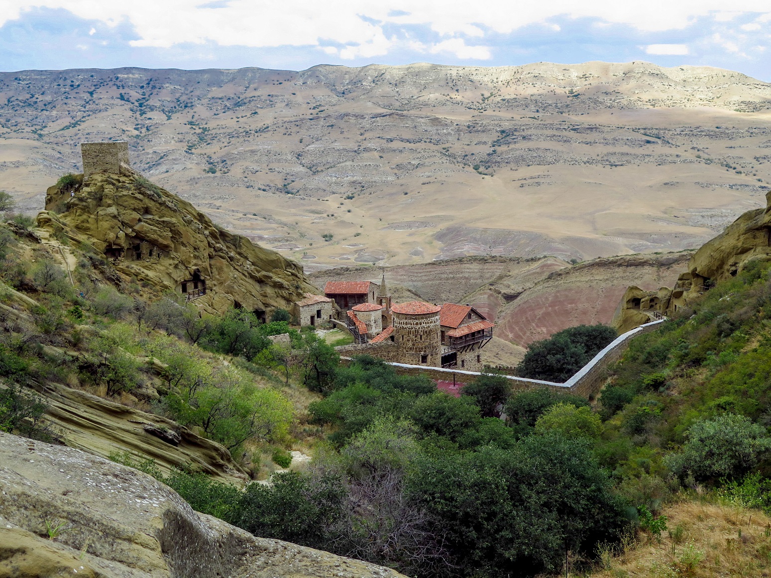 En continuant notre périple, nous sommes repassés par Tbilissi et y sommes restés une journée afin d’aller visiter le monastère de Davit Gareja. En saison, des bus touristiques partent de Liberty Square quotidiennement, ce qui rend l’excursion très accessible. Le monastère isolé se situe à 70 kilomètres au sud-est de Tbilissi, à la frontière de l’Arménie. Les paysages y sont totalement différents du reste du pays, soit beaucoup plus arides, ce qui rend cette excursion unique.