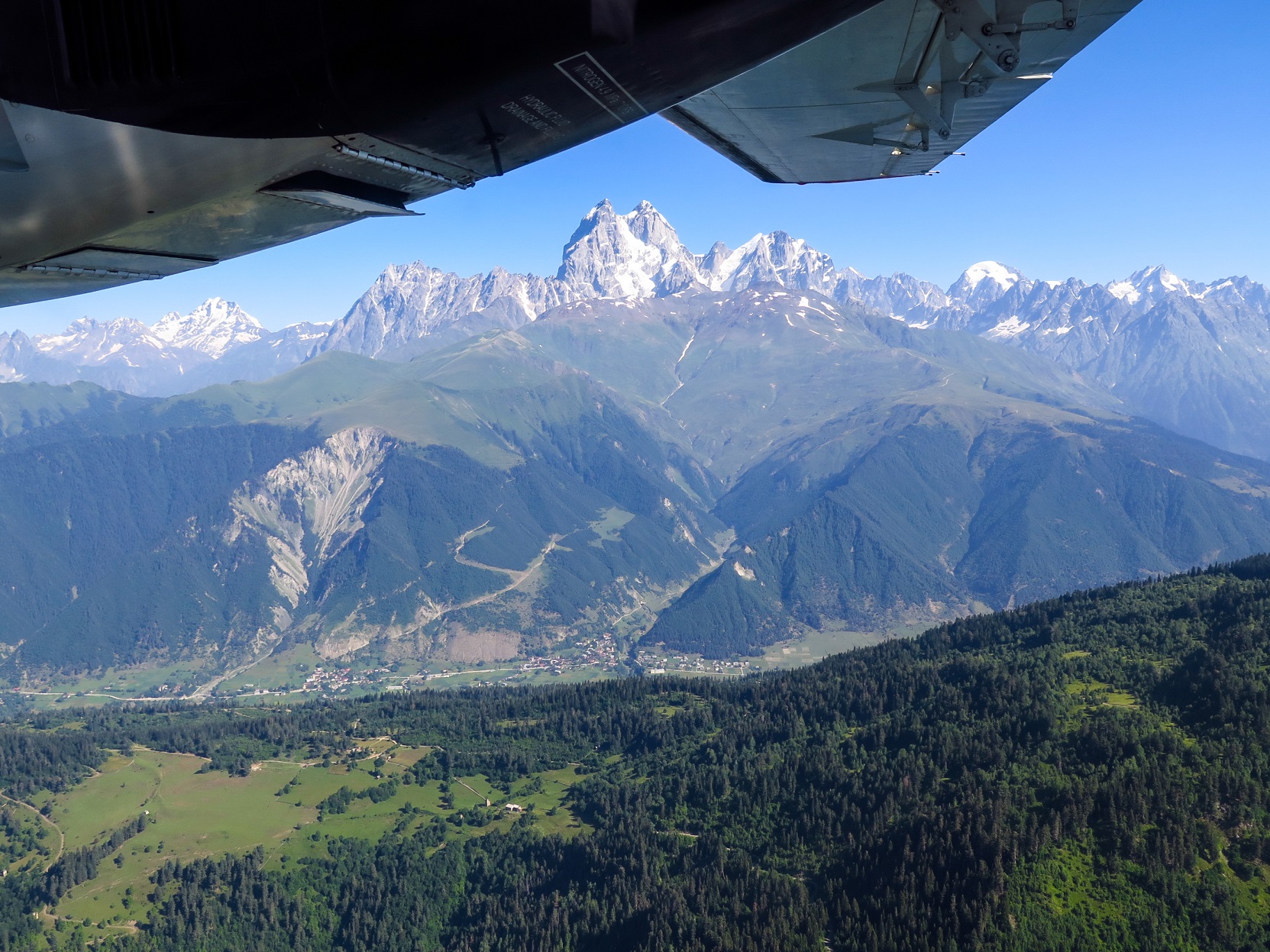Maintenant, vous l’aurez compris, j’aime marcher. Toutefois, j’aime surtout la variété. J’ai donc adoré le fait de pouvoir faire une foule d’activités avant d’attaquer une autre randonnée. Celle-ci fut dans la région de Mestia, au nord-ouest du pays. Pour s’y rendre, j’avais réservé un vol avec Vanilla Sky. C’est une compagnie privée assez particulière puisqu’il n’est possible de réserver des billets que 30 jours pile avant la date de départ. Puisqu’il n’y a que 17 sièges dans cet avion, les places s’envolent rapidement. J’étais vraiment fière lorsque j’ai réussi à réserver les billets et ce vol était incroyable. L’avion étant petit, il vole à basse altitude et la vue sur les montagnes du Caucase est à couper le souffle, du moins quand le temps est dégagé comme cela a été le cas pour nous. L’atterrissage à Mestia, qui se trouve au cœur d’une région classée au patrimoine mondial de l’Unesco et qui se caractérise par ses centaines de tours de défense, est mémorable.