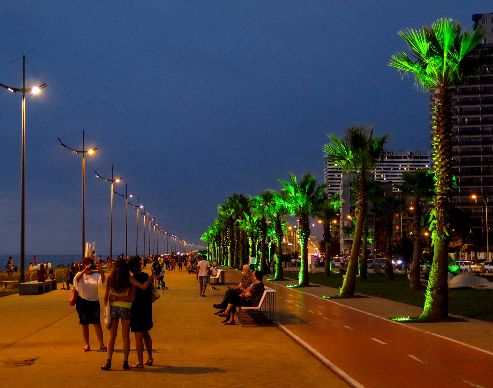 Après ce ressourçant séjour au milieu de la nature, nous sommes passés brièvement par Koutaïssi et avons décidé de terminer notre séjour sur la côte de la mer Noire, plus précisément à Batumi. Cette station balnéaire très populaire chez les Géorgiens et les Russes ne répondra pas aux attentes de tous les voyageurs. Toutefois, si, comme moi, l’idée de déambuler sur une promenade de 7 kilomètres construite le long de la mer et d’y observer touristes irakiens, géorgiens, saoudiens ou russes suscite votre curiosité, et bien vous serez comblés. Cette ville est aussi composée d’un joli centre historique et un énorme jardin botanique se trouve à proximité. Je peux imaginer qu’elle soit un peu ennuyante en basse saison, mais en été, ce lieu animé à la longue plage de galets est plutôt agréable.