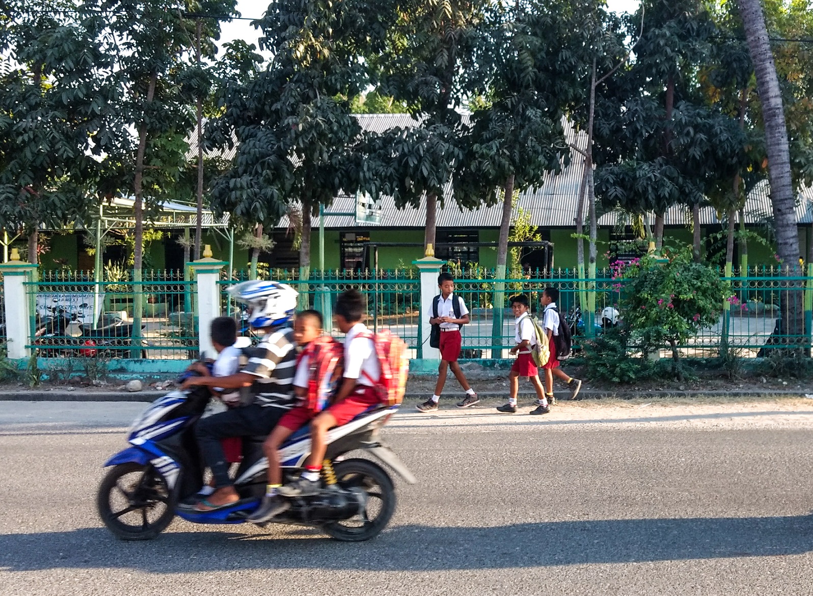 Sumba compte deux points d’entrée principaux, soient les aéroports de Waingapu et Tambolaka. Il est judicieux d’arriver à un endroit et repartir de l’autre. Comme la région de Tambolaka (Waitabula) est la plus spectaculaire, il est bien de la réserver pour la fin et ainsi vivre un crescendo de découvertes tout au long de votre séjour. Il y a plusieurs vols par semaine depuis/vers Bali avec Wings Air (à acheter via le site Ticketindonesia puisqu’il n’est pas possible de payer avec une carte de crédit internationale sur le site de Wings Air). En débarquant à Waingapu, il n’est pas difficile de trouver un taxi qui vous emmènera au centre de cette charmante petite ville. Personnellement, j’ai logé au Tanto hôtel qui est très propre et bien situé, à quelques minutes à pied du marché et pas très loin du village traditionnel de Prailiu, célèbre pour ses tissages (ikat) et un bon endroit où s’initier à la culture unique de Sumba. Quant au port, il se trouve à une bonne trentaine de minutes de marche de l’hôtel, ce qui vous ouvrira l’appétit afin de mieux apprécier les brochettes cuisinées à l’arrière des motos ou les fruits de mer servis dans les warungs (cantine) avec vue sur la mer. Cet endroit est particulièrement agréable au coucher du soleil, lorsque les familles s’y retrouvent pour jouer au soccer ou tout simplement pour profiter de l’air ambiant qui se rafraîchit.