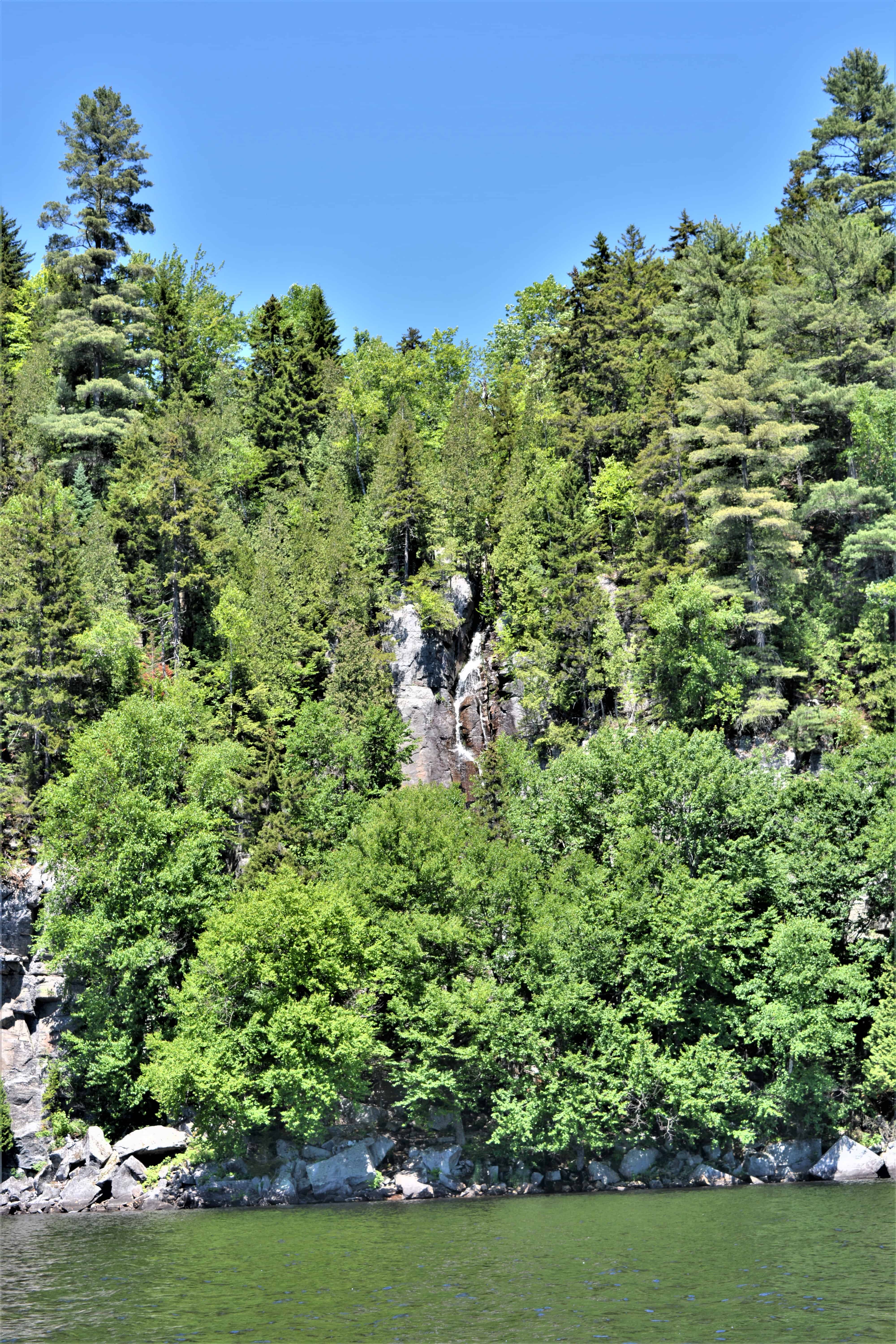 En route, nous avons pu apercevoir une petite chute d’eau absolument magnifique et des falaises de roches impressionnantes. Le lac Long est vraiment agréable à traverser puisque celui-ci est très calme et les arbres majestueux qui l’entourent créent un reflet sublime sur une eau opaque.
