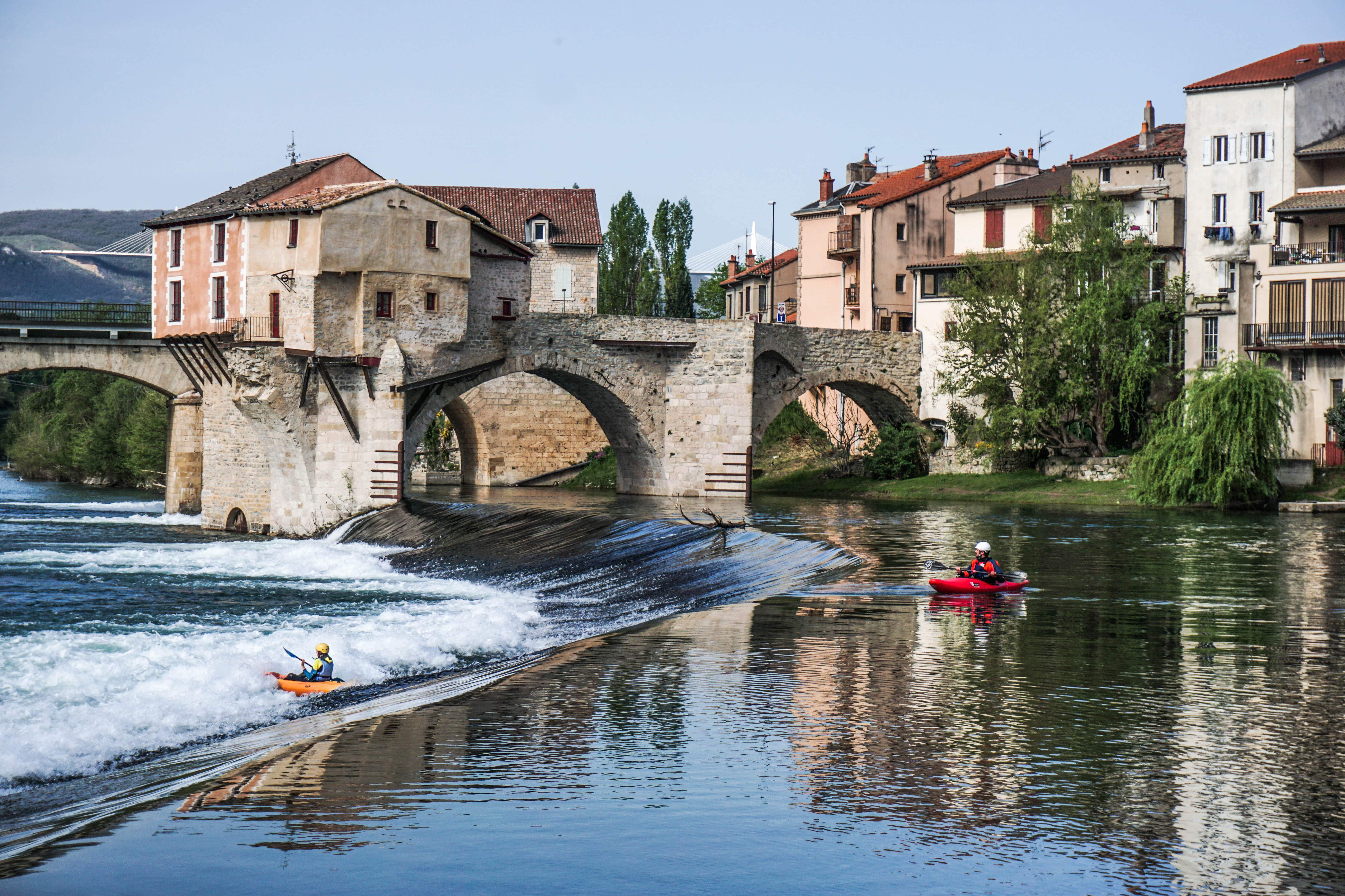 Quoi de mieux que de débuter la journée avec un brin d’adrénaline! La première activité que nous avons eu la chance de vivre lors de notre séjour à Millau fut l’expérience du kayak et du rafting avec Stade d’eaux-vives Millau sur le site de la Maladrerie sur le Tarn. Vêtues d’une combinaison de plongée contre le froid et d’un casque, nous avons appris les différentes techniques pour bien maîtriser notre kayak et avons eu un plaisir fou à se jeter à l’eau à la suite d’une descente en rafting. Vivre ces expériences dans un environnement contrôlé comme celui-ci est complètement différent et permet l’exploration des 2 sports en toute confiance. Notre moniteur était très attentif et a su nous donner envie de revivre ce genre d’activité. Puisque nous avions la vue sur les quais du centre ancien de Millau et le fameux Viaduc, le site était absolument magnifique et inspirant.