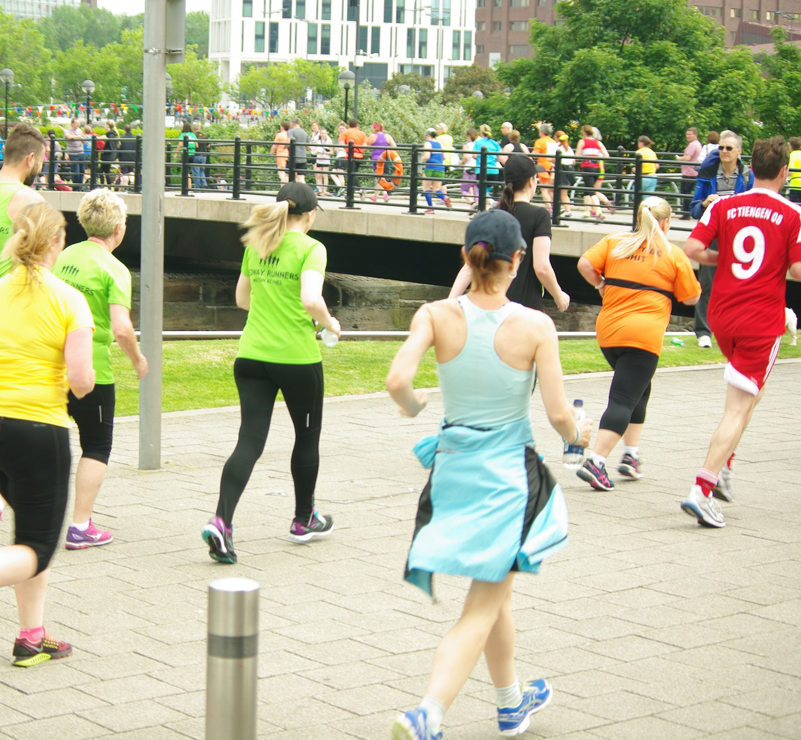 Dans la plupart des villes, la foule est nombreuse pour encourager les coureurs et les organisateurs se donnent parfois beaucoup de mal pour rendre l’expérience inoubliable. À Liverpool, par exemple, même les coureurs qui ne faisaient « que » le 5 km ont eu droit à une fin de course dans le stade. Toute une sensation extraordinaire que d’entrer en courant dans le stade pour y faire un dernier tour de piste sous les applaudissements nourris de la foule!