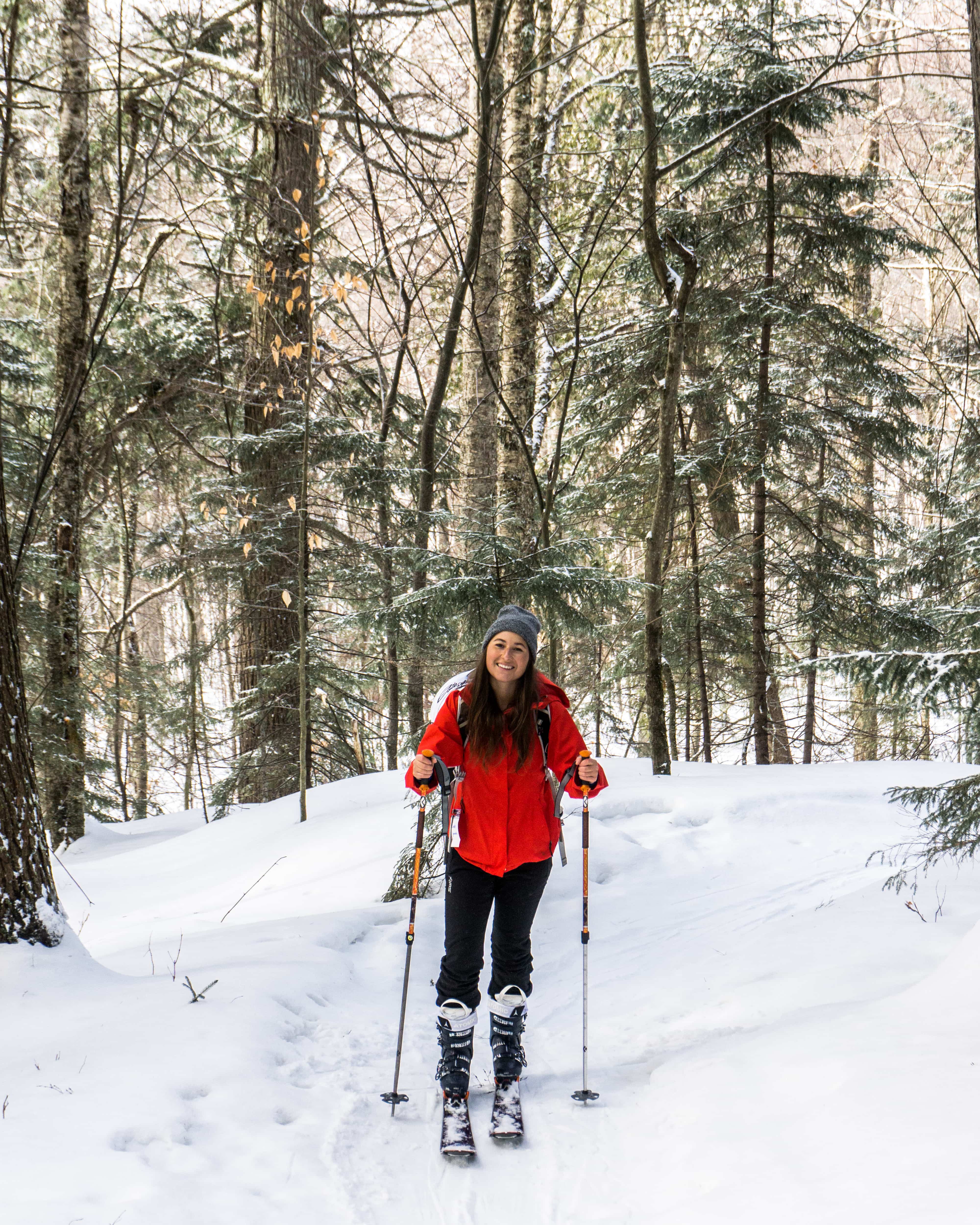 J’ai pu, lors de mon séjour, essayer ce sport pour la toute première fois et j’ai vraiment adoré! La randonnée alpine, c’est un peu un mélange de randonnée pédestre et de ski de fond. En gros, on monte la montagne de ski avec dans nos pieds des bottes et des skis adaptés pour l’ascension. Sous les skis, des peaux synthétiques sont collées afin de permettre aux skis de glisser seulement vers l’avant et d’adhérer à la neige lorsqu’inclinés vers le haut. Ainsi, on ne glisse pas à reculons, on peut monter la montagne sans problème et on se fait un plaisir fou à glisser lorsque le sentier descend un peu! Bien que ce soit un sport assez physique, j’ai trouvé le sentier Vertigo du mont Tremblant vraiment parfait. L’ascension est constante mais lente pour une bonne partie du sentier alors on peut apprécier le décor et ça rend l’expérience très plaisante! Il y a bien entendu plusieurs sentiers pour tous les niveaux et les goûts. Finalement, le plus beau dans tout ça, c’est qu’on apprécie mille fois plus la descente en ski alpin lorsqu’on a mis autant de temps et d’effort pour monter la montagne. C’est une super récompense, la cerise sur le sundae!