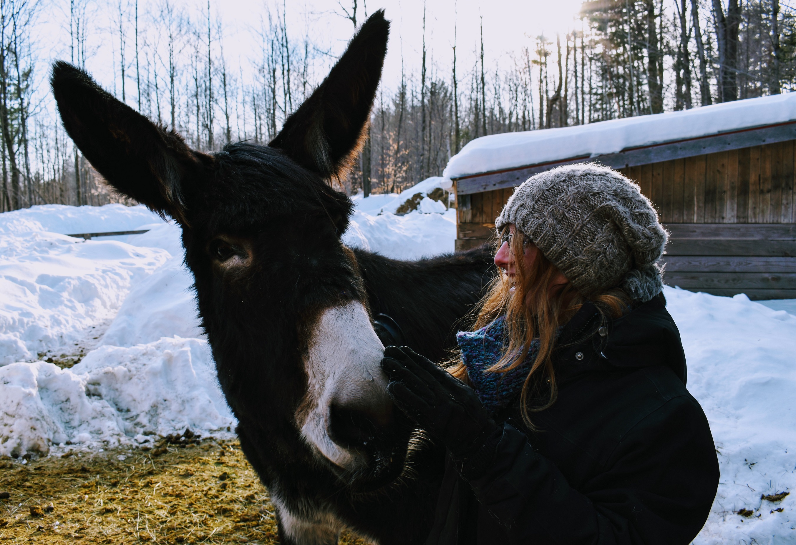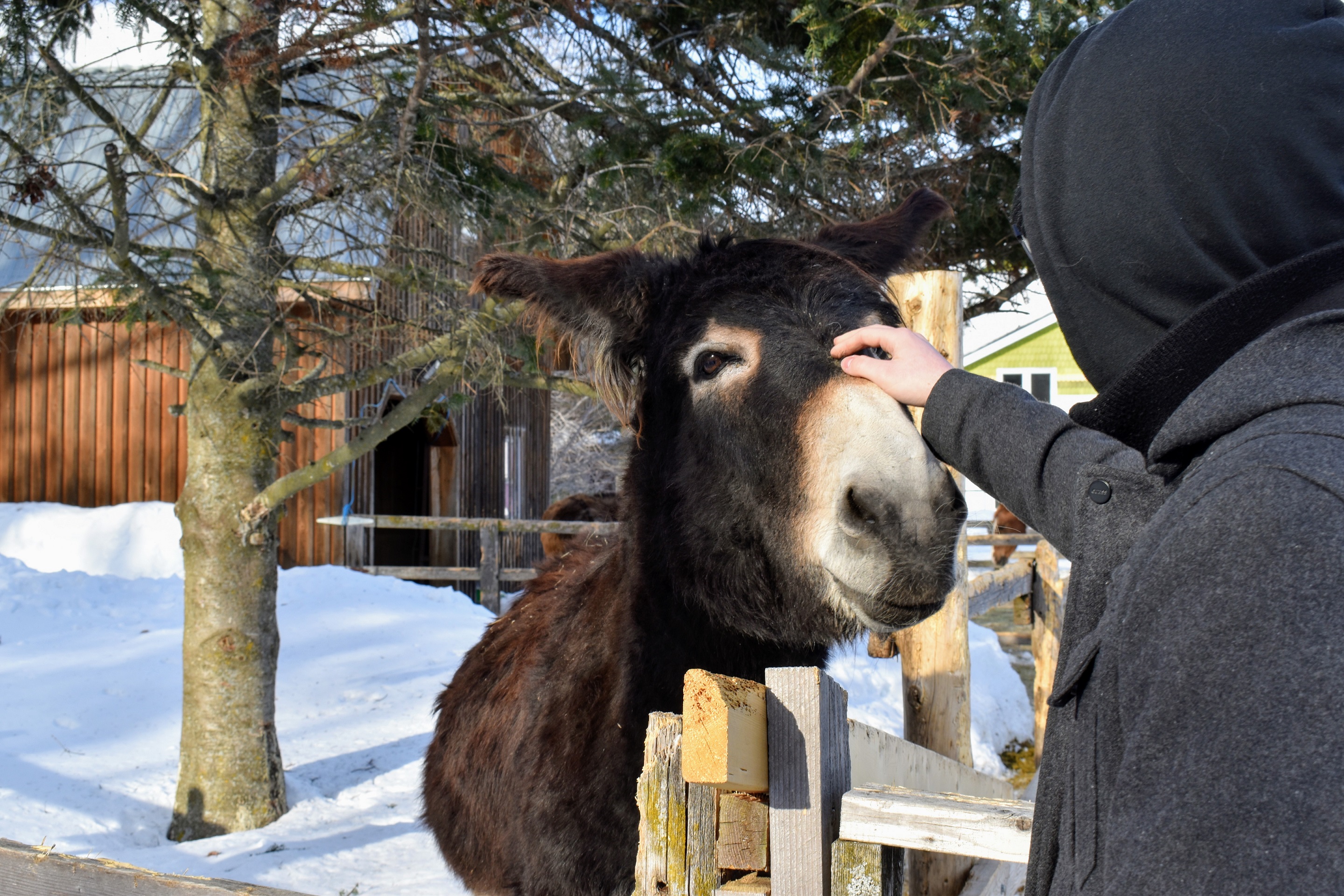 Il est possible d’aller brosser les ânes dans l’enclos ce que j’ai fait avec plaisir. L’âne est un animal très social. Je pensais premièrement que l’animal aurait peur de moi, mais c’est tout le contraire. Les ânes venaient à moi pour se faire brosser et en demandaient encore, encore et encore. Un fait qui m’a aussi surprise c’est de remarquer à quel point l’âne était grand comparativement à la pensée populaire. Malgré sa robustesse, l’âne est un bon ami de l’Homme.