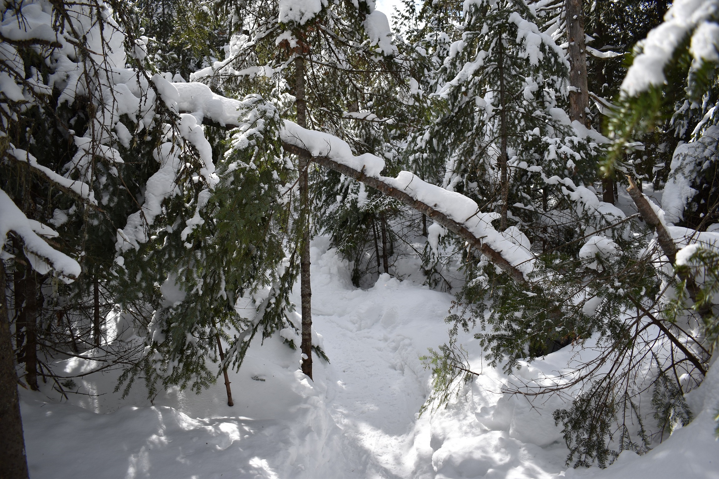 Le parc de la forêt Ouareau, situé à Notre-Dame-de-la-Merci, est un lieu formidable pour profiter de la nature. Été comme hiver, ce parc offre de multiples possibilités d’activités en montagne. J’ai opté pour la raquette, mais il est aussi possible de visiter le parc en ski de fond. Les sentiers de raquette et de ski de fond font plusieurs kilomètres et il y en a pour tous les goûts, de débutant à plus expérimenté. Je dois spécifier que j’aurais pu parcourir le parc sans mes raquettes puisque la piste était bien tapée et que cela faisait plusieurs jours qu’il n’avait pas neigé. Tout de même, le parcourir en raquette m’a permis de rajouter un petit défi à l’aventure. Le fait d’avoir des raquettes permet aussi de faire du hors-piste pour profiter de merveilles naturelles qui ne se trouvent pas sur les sentiers balisés.