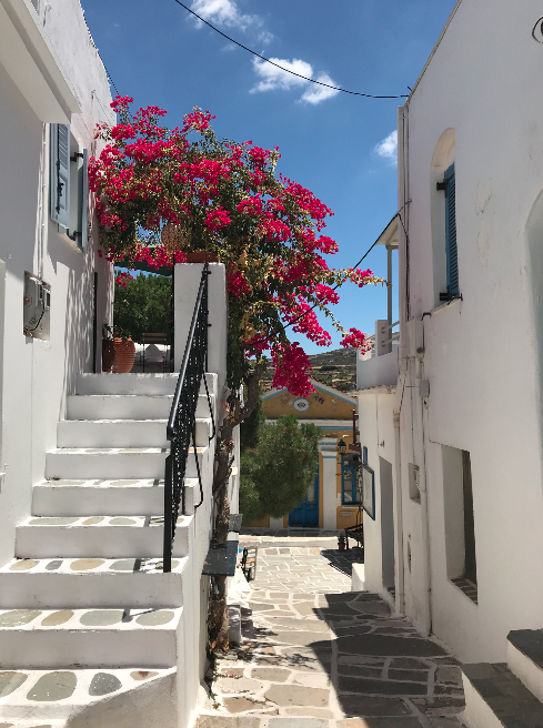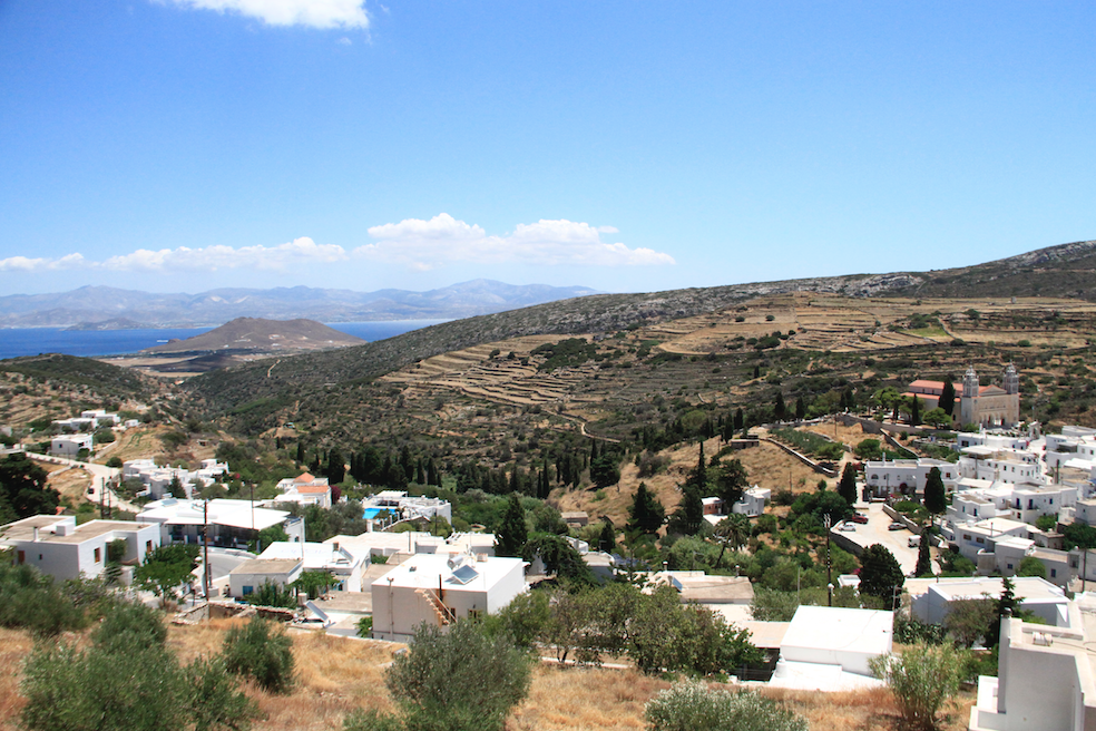Dans les Cyclades, Paros est une exception. L’île a su conserver une activité économique qui ne dépend pas essentiellement du tourisme comme Mykonos ou Santorini. Elle possède une agriculture dynamique, des vignes qui datent de l’époque vénitienne et elle produit quelques variétés de fromage frais qu’on ne trouve nulle part ailleurs. Dans les terres, en plein centre de l’île, caché à flanc de montagne, le village de Lefkès est l’un des mieux conservés des Cyclades. Ses ruelles blanches escarpées sont envahies de dizaines de variétés de fleurs aux tons violets et roses.