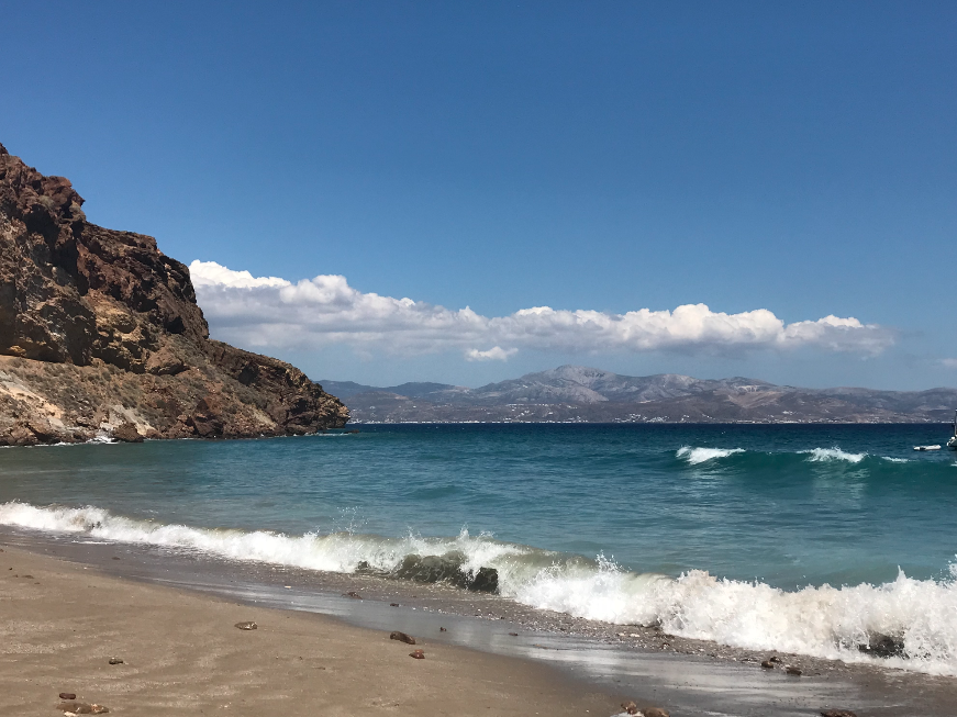 Après votre séance de balnéo, dirigez-vous vers Piso Livadi : petit port de pêche à quelques kilomètres vers la partie sud de l’île, globalement plus sauvage et moins touristique.