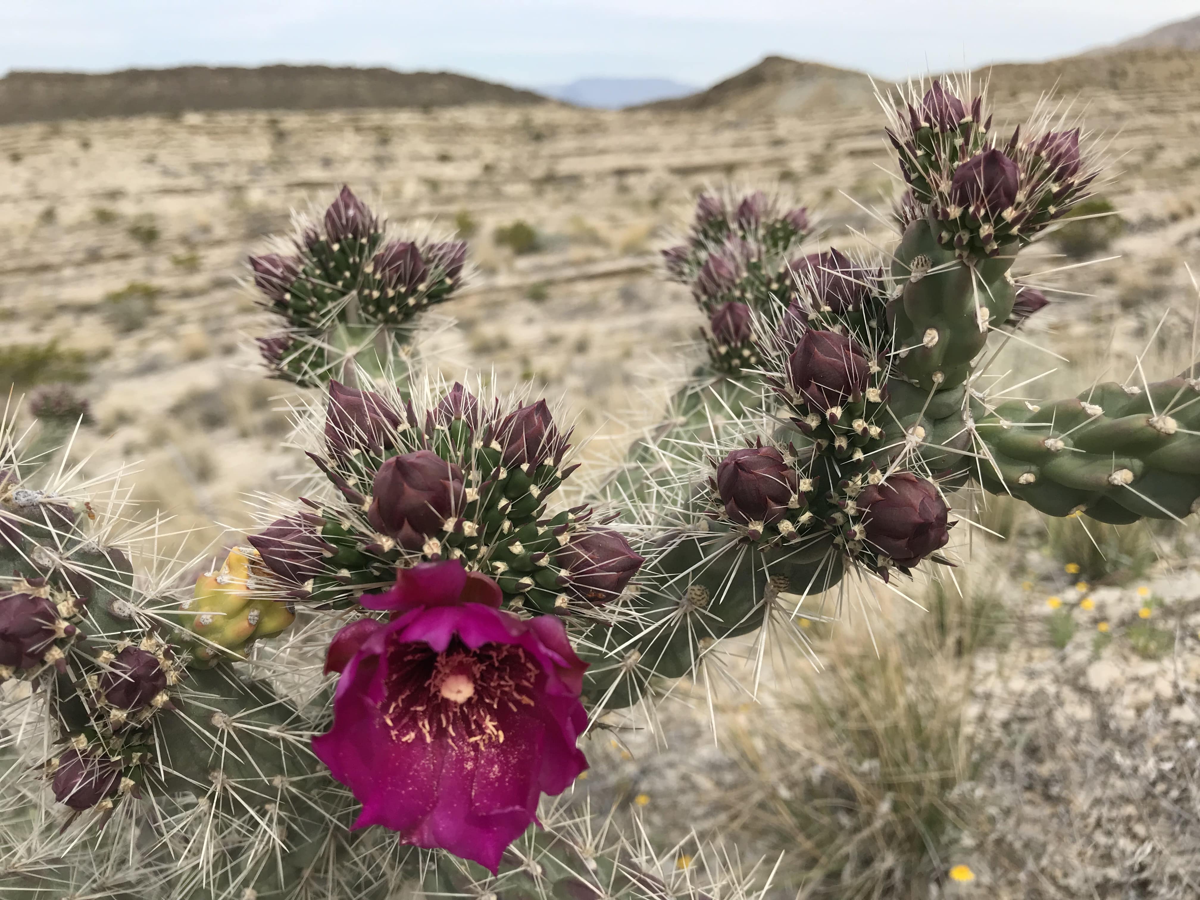 Nous nous retrouvons au coeur du désert de Chihuahua, l’un des plus grands d’Amérique du Nord, qui rassemble sur son territoire pas moins de trois écosystèmes : montagnes, désert et fleuve. Mais quand je parle de désert ici, oubliez cette image stéréotypée des vastes étendues stériles, avec trois cailloux et un cactus assoiffé qui essaie de survivre. Big Bend, au contraire, c’est le désert où la vie est reine. La faune et la flore sont d’une richesse spectaculaire. Big Bend National Park, c’est plus de 1 200 espèces d’oiseaux, 75 espèces de mammifères, 56 espèces de reptiles et tout autant d’insectes. L’écho des bourdonnements dans les canyons et vallées est un concert unique. C’est également une flore exceptionnelle avec plus de 1 200 espèces de plantes et fleurs. Nous n’avions jamais vu autant de cactus en fleurs avec une telle variété de couleurs. Les montagnes Chisos, si particulières et difficilement descriptibles, sont à couper le souffle. Selon la légende, les Indiens pensaient qu’après avoir construit la Terre et le Ciel, le Créateur avait jeté là ses rochers inutilisés. Nous avons traversé ce parc du nord au sud et de l’est à l’ouest. À perte de vue, les paysages sont phénoménaux, la nature majestueuse, les vallées luxuriantes et les canyons grandioses.