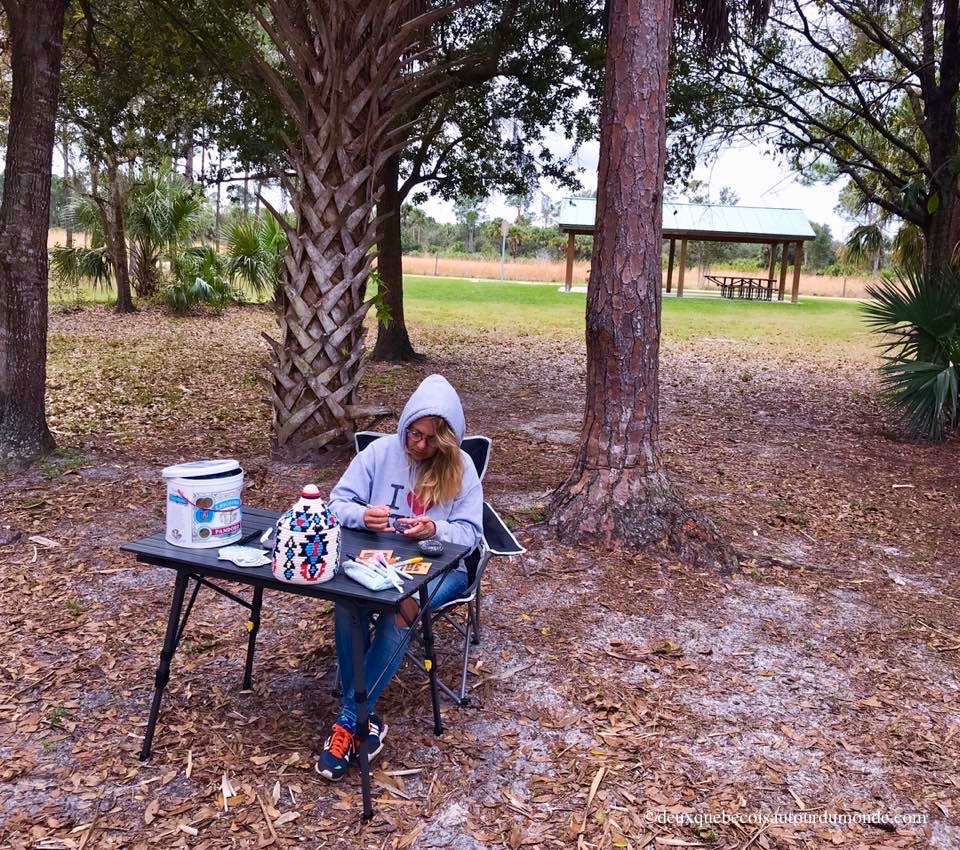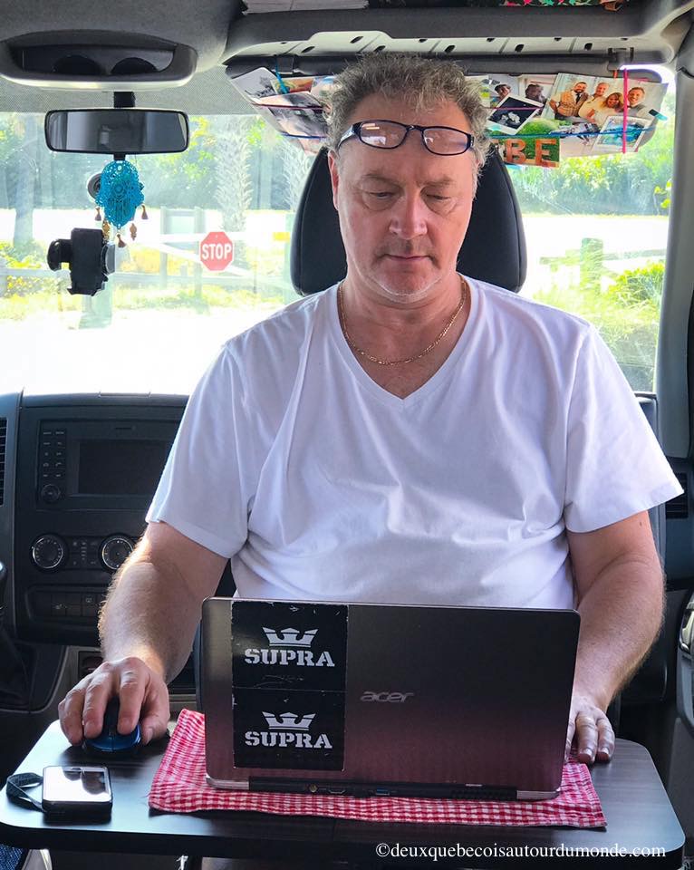 Un autre aspect essentiel est de déterminer qui fait quoi. La clé de la réussite d’un bon travail d’équipe. Nôtre répartition des tâches s’est faite spontanément de manière traditionnelle. Mon homme s’occupant des tâches reliées au van (vidange, eau grise, essence, etc.) et moi des tâches reliées à notre petit intérieur (cuisine, lavage, rangement, etc.). L’un et l’autre étant toutefois parfaitement capable d’assister ou de faire les tâches de l’autre. Bonne équipe, bonne communication ! Mais bien évidement, il y a des petits heurts sur la façon de conduire… dur, dur pour l’un et l’autre de ne pas prodiguer nos fabuleux conseils d’experts conducteurs quand l’autre est au volant. On travaille fort, fort là-dessus !