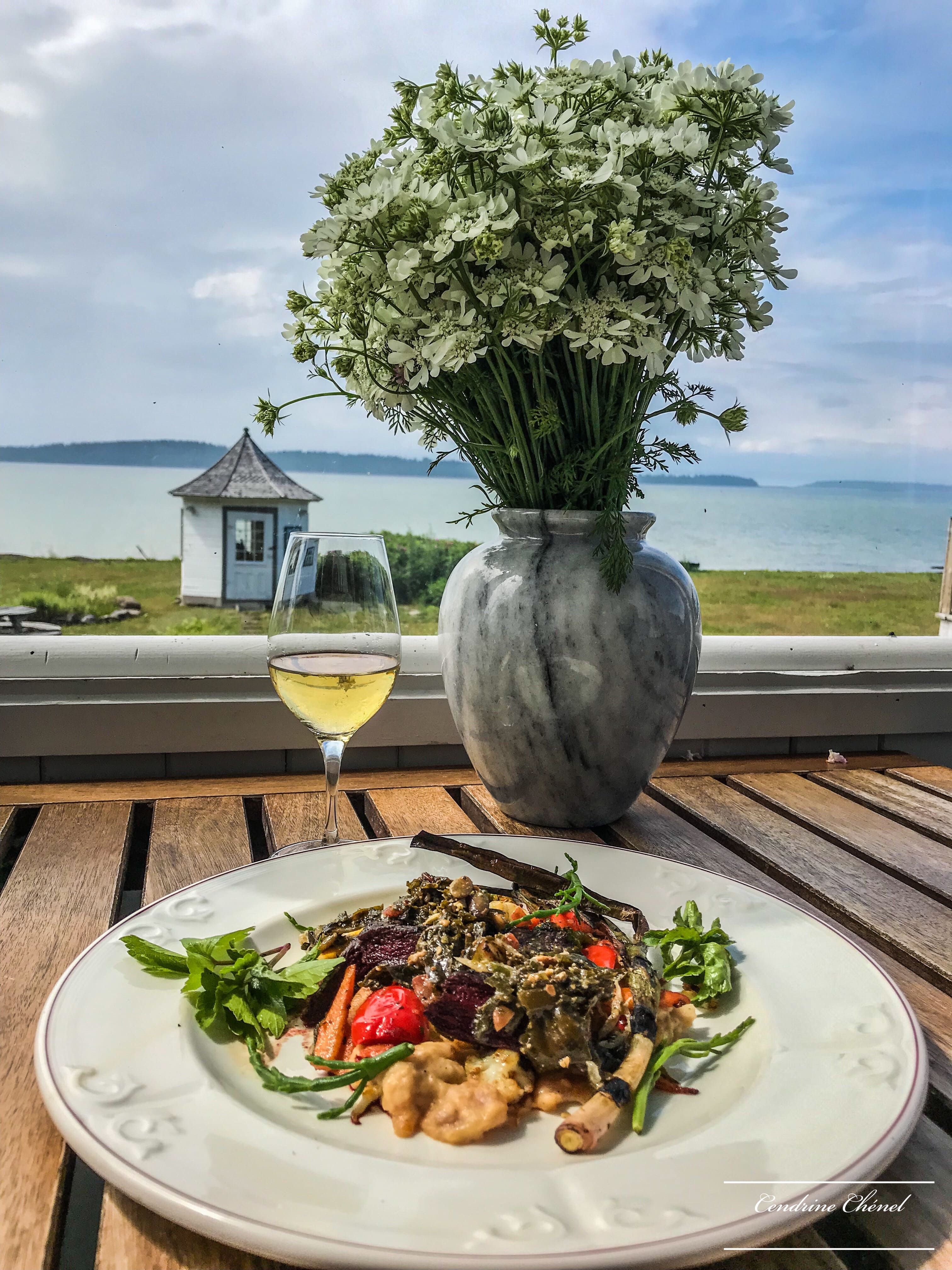 Après la nourriture de l’esprit, voici une bonne table pour déguster des produits des maraîchers et vivre une expérience inusitée : déguster du phoque. Nous avons testé et nous avons adoré. Dans l’ancien presbytère, bâtiment classé historique, nous sommes chaleureusement accueillis par Kim Côté et Perle Morency, les propriétaires et chef de ce resto où la terrasse offre une vue splendide. Les papilles se délectent de la table et les yeux de la vue !