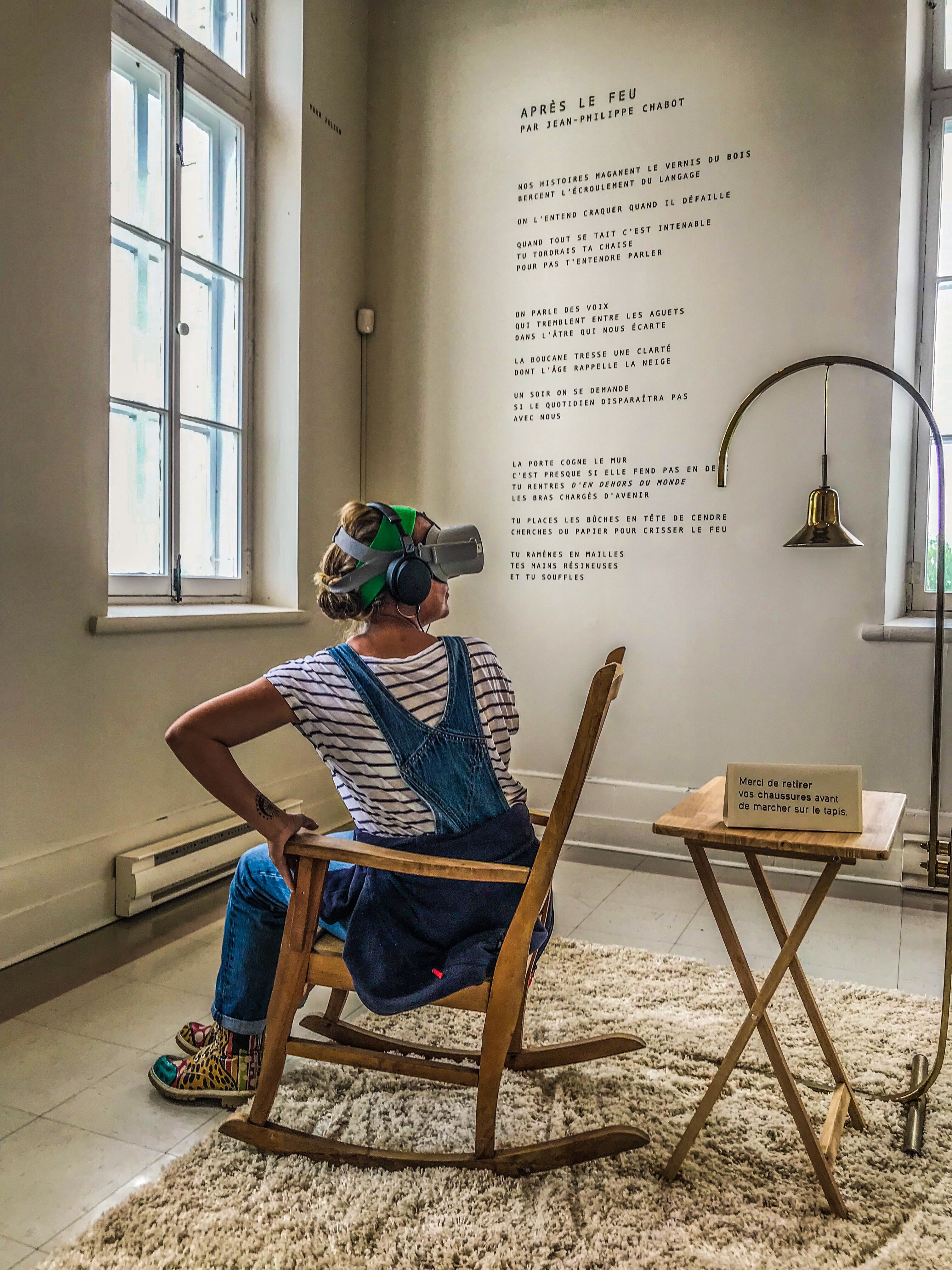 L’exposition actuelle « Les Berçantes » est une ode au patrimoine, à nos belles et vielles chaises berçantes, toute en poésie. La mémoire, la tradition, l’enfance, les racines sont explorées, au travers ces belles berceuses et mises en valeur par des oeuvres sculpturales, de magnifiques photographies et vidéos. Plusieurs créations sont également parsemées dans le village, un pittoresque parcours à découvrir. Une expérience de réalité virtuelle « Après le feu » tournée en 360 degrés dans les paysages de la région est à expérimenter au centre d’art de Kamouraska et, surtout, laissez-vous bercer par le magnifique texte de Jean-Philippe Chabot.