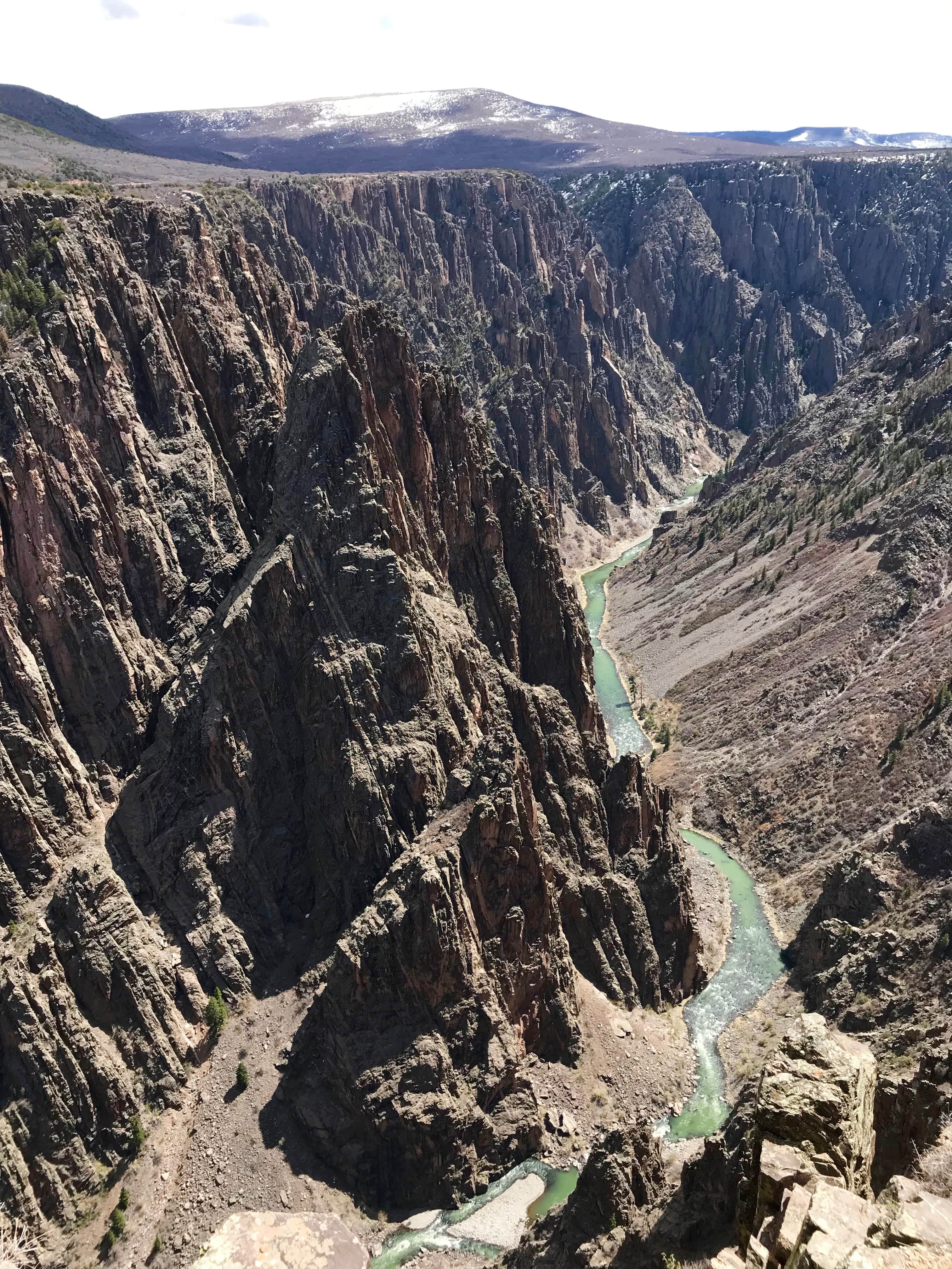 Pour finir mais non le moindre ! Les montagnes impressionnantes et majestueuses de pierre noire font du Black Canyon National Park un lieu à visiter dans le sud ouest du Colorado. Les pans de ces immenses montagnes ont la couleur intense du charbon, contrastant avec les eaux turquoises de la rivière Gunnison que l’on aperçoit au fond des vallées. Ce parc est le bonheur des alpinistes osant braver les parois et les hauteurs vertigineuses. Le parc offre des circuits de randonnée pour les marcheurs expérimentés et pour les autres, comme nous, les curieux, les paresseux, des sentiers plus faciles conduisant vers des points de vue sensationnels où des parfums d’armoise et de genévrier embaument.