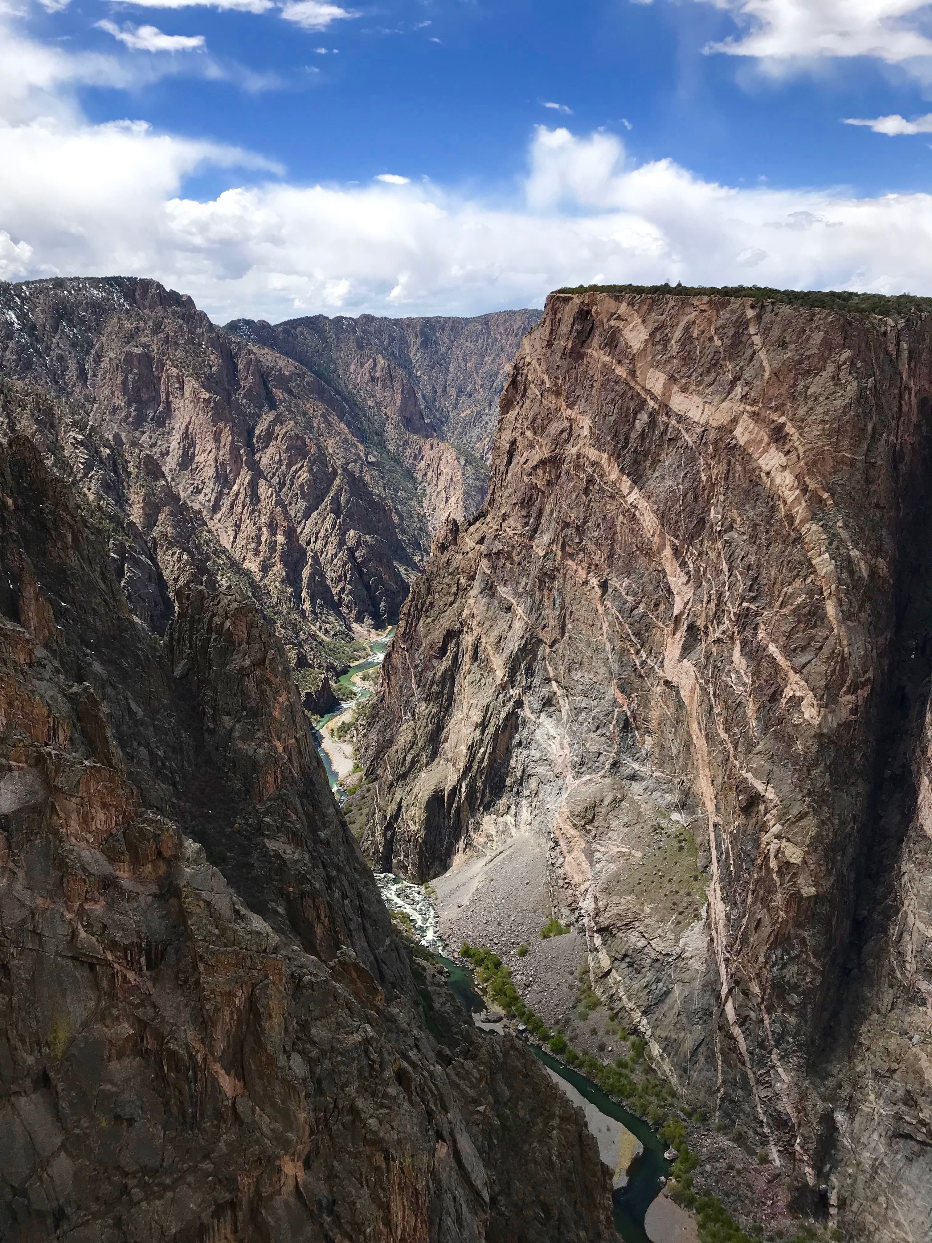 Pour finir mais non le moindre ! Les montagnes impressionnantes et majestueuses de pierre noire font du Black Canyon National Park un lieu à visiter dans le sud ouest du Colorado. Les pans de ces immenses montagnes ont la couleur intense du charbon, contrastant avec les eaux turquoises de la rivière Gunnison que l’on aperçoit au fond des vallées. Ce parc est le bonheur des alpinistes osant braver les parois et les hauteurs vertigineuses. Le parc offre des circuits de randonnée pour les marcheurs expérimentés et pour les autres, comme nous, les curieux, les paresseux, des sentiers plus faciles conduisant vers des points de vue sensationnels où des parfums d’armoise et de genévrier embaument.