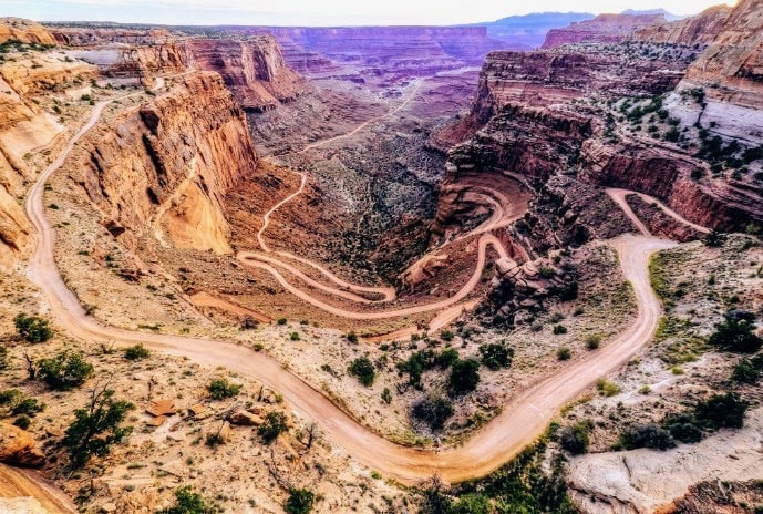 - Jeter un coup d’oeil, ceux qui ont le vertige s’abstenir, sur la Shafer Trail, une impressionnante route sinueuse qui était utilisée à l’époque par les cowboys et les mineurs