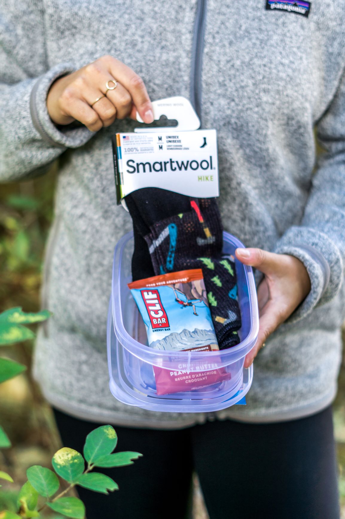 - Comme elle a tendance à avoir chaud durant une randonnée, Marie-Pier a opté pour un chandail à manches longues léger avec par dessus le polar Better Sweater de Patagonia pour la garder au chaud avant et après la randonnée, ainsi qu’au sommet de la montagne.