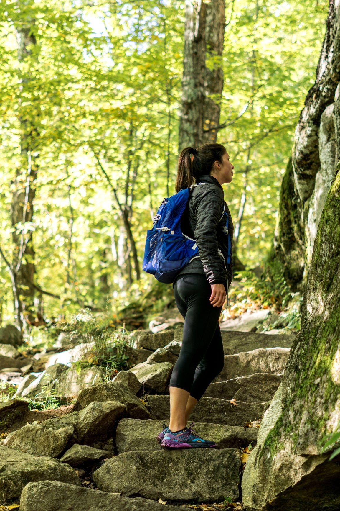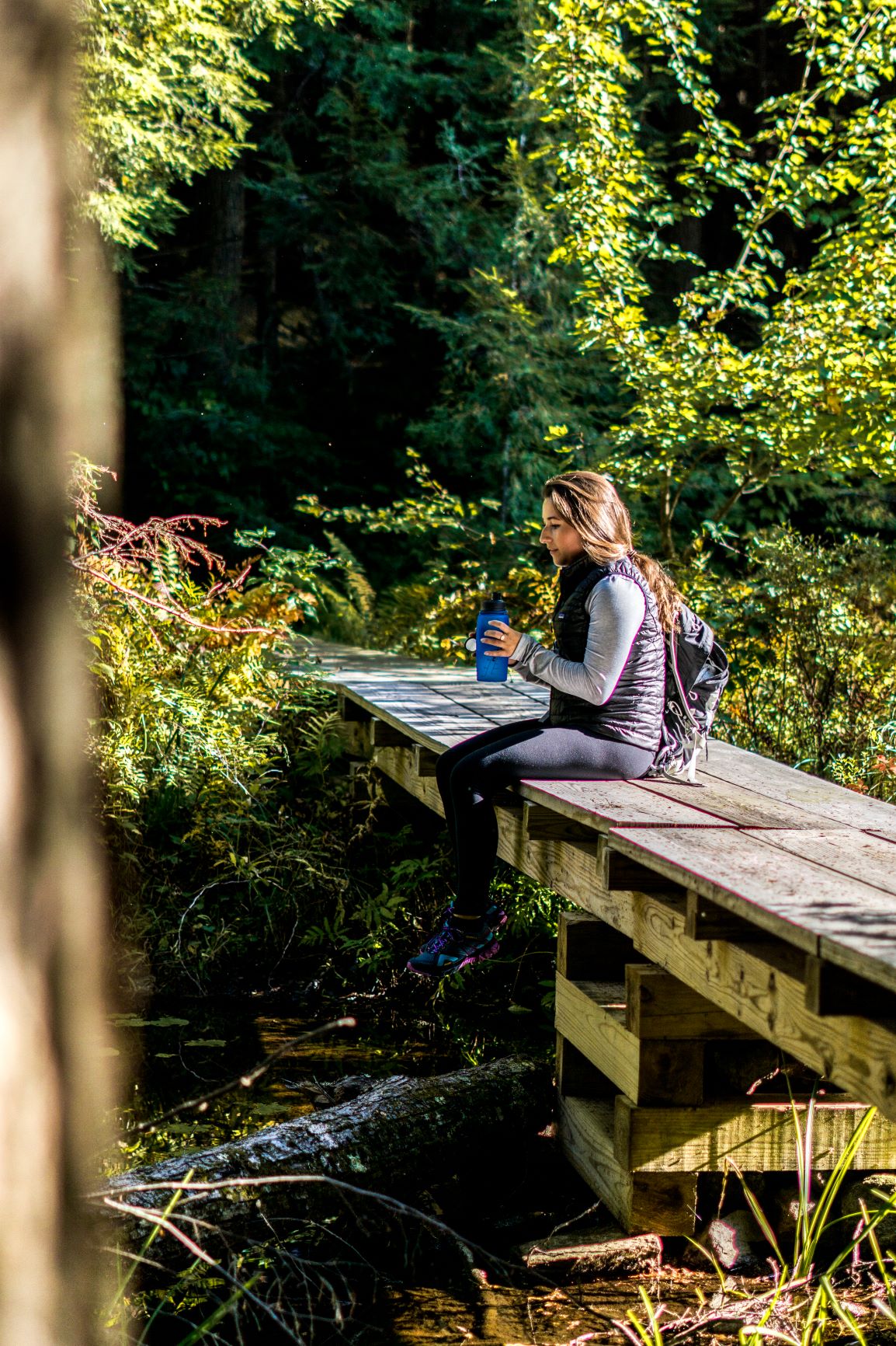 - Étant un peu plus frileuse, j’ai adoré le confort du manteau Nano Puff de Patagonia. Celui-ci offre une bonne isolation contre le froid lorsque la randonnée n’est pas trop exigeante et qu’il fait plus humide dans la forêt.