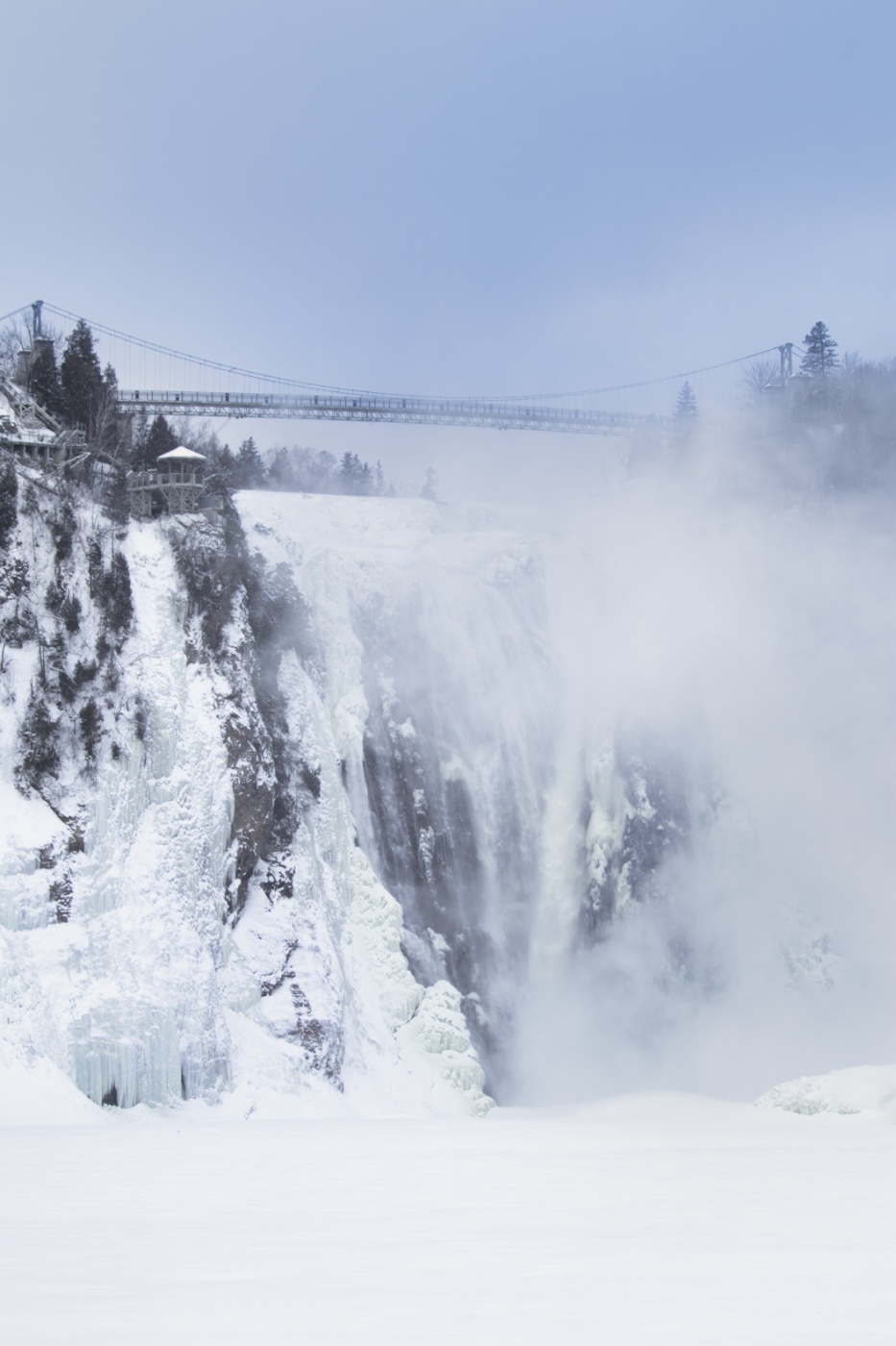 Lorsque vous prenez la route vers la Côte-de-Beaupré, un arrêt au Parc de la Chute-Montmorency s’impose ! Plusieurs kilomètres de sentiers de marche sont disponibles autour de l’une des plus impressionnantes chute du Québec, avec ses 83 mètres de hauteur. En hiver, le parc est encore plus spectaculaire car, par temps froid, la bruine et les éclaboussures gèlent et créent des amas de neige/glace devant la chute. C’est le fameux Pain de Sucre. Vous pourrez voir la chute Montmorency d’en haut sur le pont, ou d’en bas sur la passerelle nouvellement aménagée. Il est aussi possible de faire un tour de cabine téléphérique et d’avoir une magnifique vue 360° sur la chute et sur l’île d’Orléans.