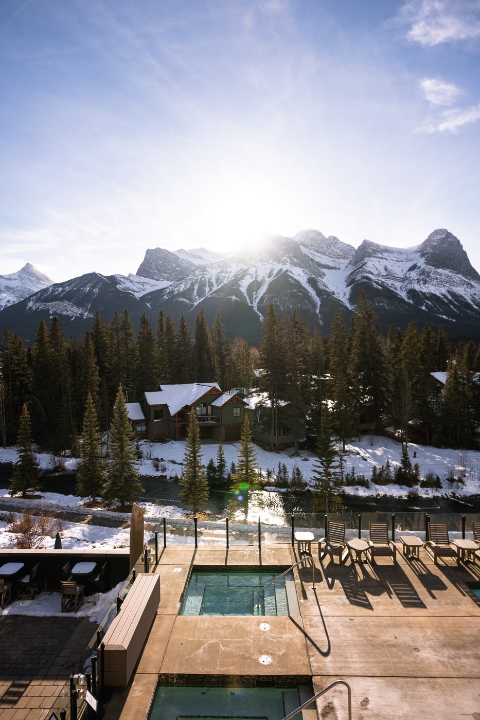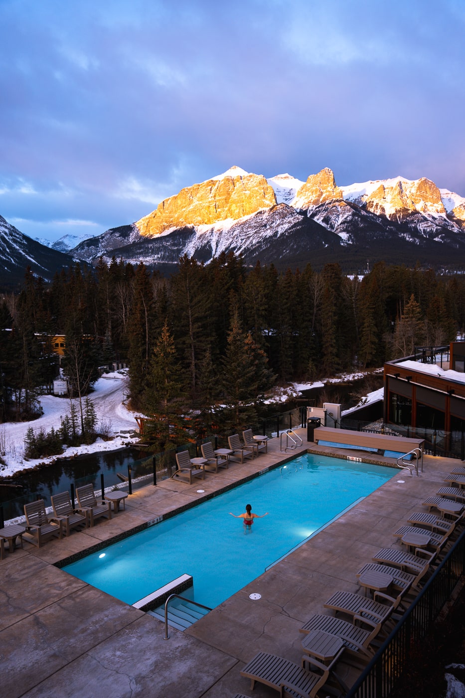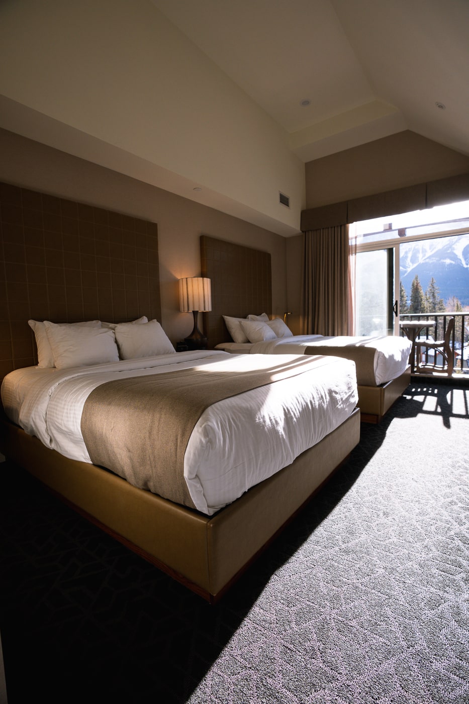 Outre sa position idéale, il jouit d’une vue imprenable sur les montagnes, notamment les Three Sisters si emblématiques de Canmore. Ainsi, vous ne raterez pas une occasion d’admirer le lever ou le coucher du soleil depuis sa terrasse, sa piscine extérieure ou encore votre balcon. C’est digne d’un rêve!