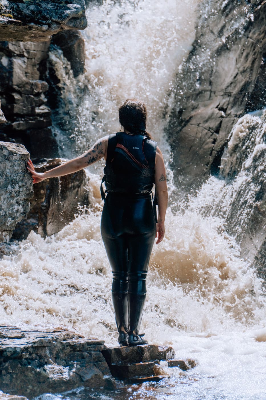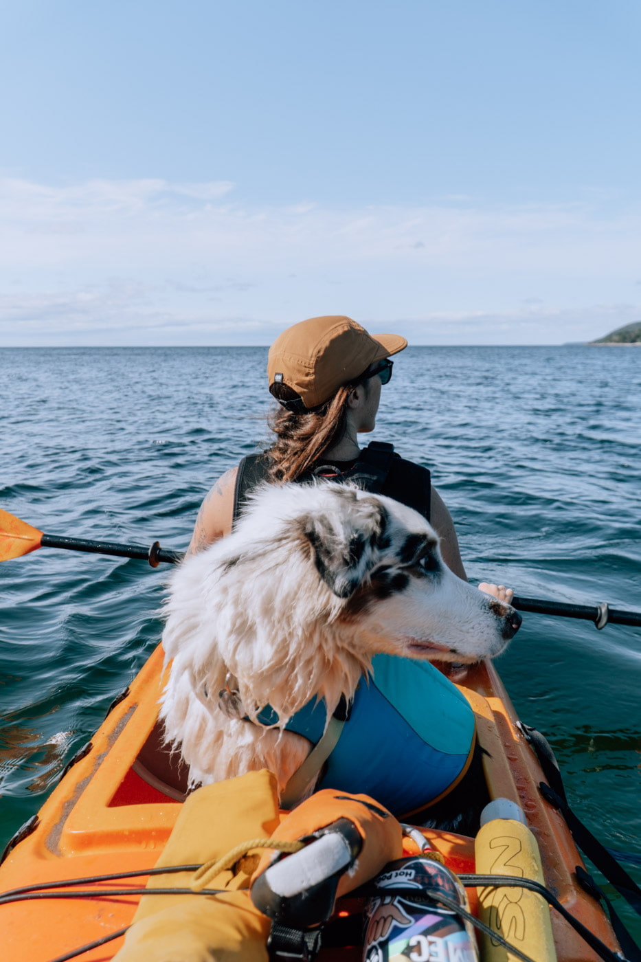 Troisième journée et non la moindre, puisqu’au programme je vous propose une expédition en kayak de mer avec Attitude Nordique. Une expérience absolument incroyable à vivre en compagnie de cette équipe joviale et passionnée par la faune et la flore maritimes. Au cours de cette activité, vous aurez peut-être la chance de croiser quelques marsouins qui vous suivront dans votre parcours. Et le petit plus de cette aventure est l’arrêt que vous ferez pour aller découvrir une chute d’eau dans laquelle on vous invitera à sauter et nager! Et si vous vous demandez si votre chien tient dans un kayak de mer, la réponse est : OUI! Ce fut un moment unique que nous avons pu vivre avec notre Merlin.