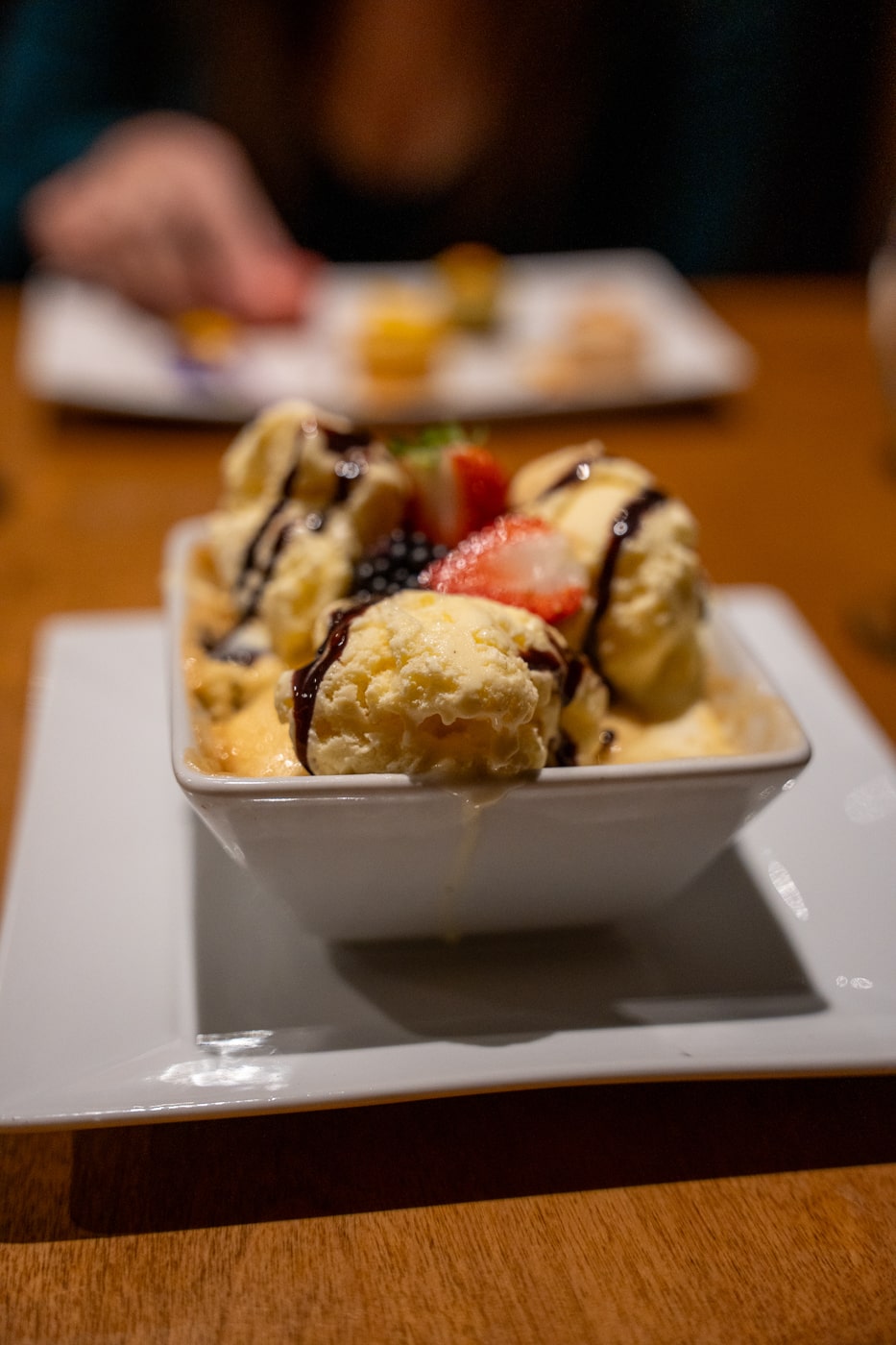 Après une journée de détente ou d’activités, quoi de mieux que pouvoir accéder directement au restaurant bistronomiquerde l’hôtel? On y sert un menu varié et une table d’hôte qui inclut une bouteille de vin et qui comblera assurément votre appétit. Je vous suggère d’essayer le Causa Nikkei qui est une fusion culinaire péruvienne-japonaise. C’est un plat unique et vraiment savoureux!