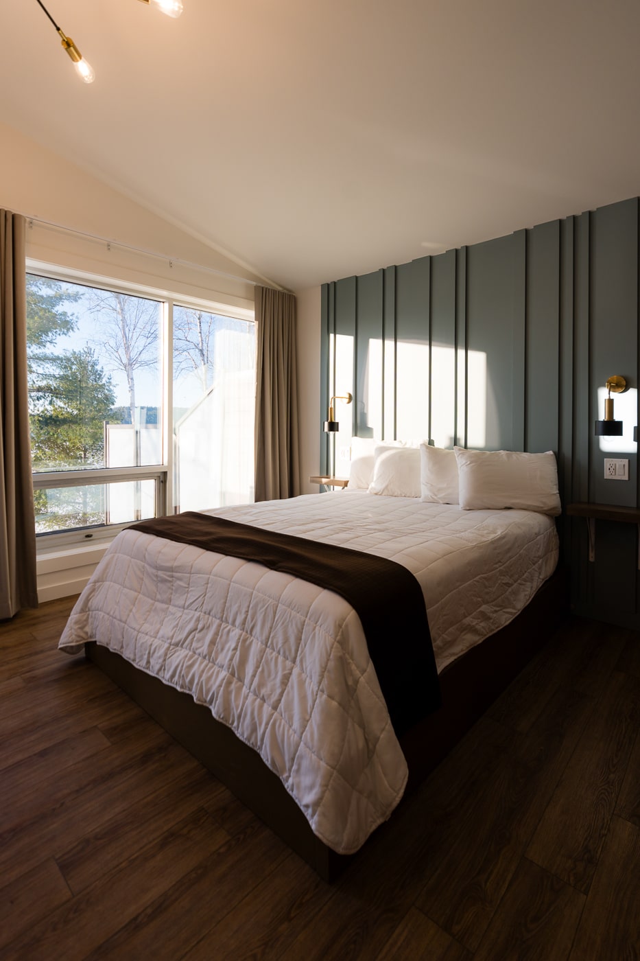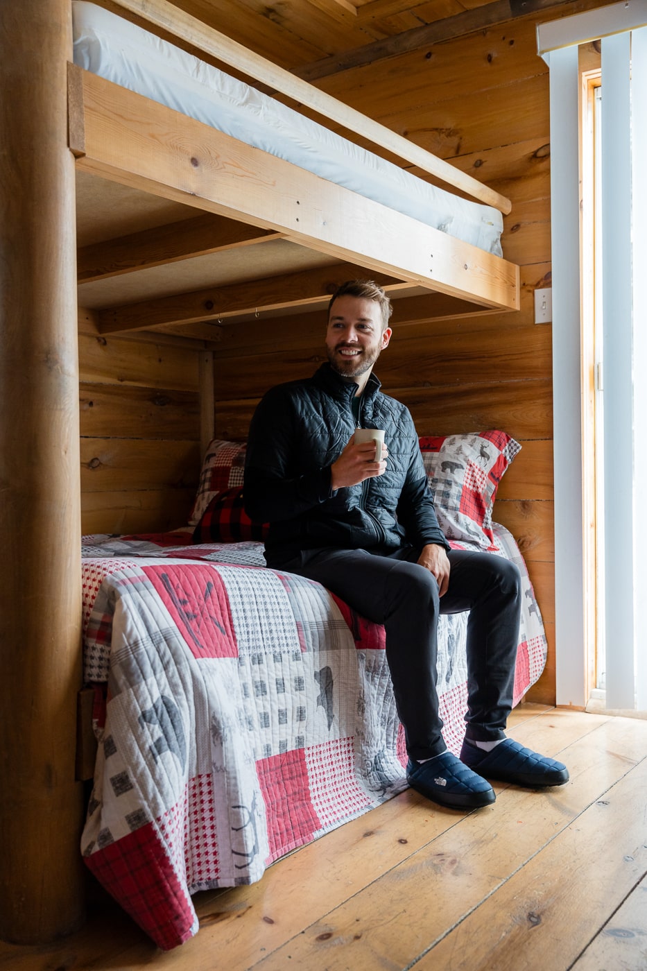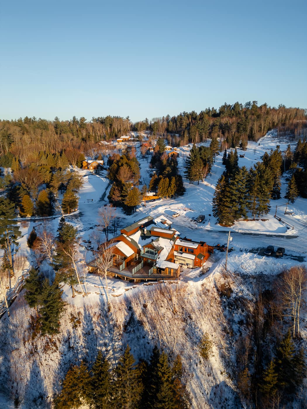 Vous l’aurez compris, on a débuté ce road trip hivernal en Abitibi-Témiscamingue par le secteur du Témiscamingue afin de participer à un événement bien spécial. C’est donc à La Bannik que l’on s’est installés pour cette première nuit dans la région et ce fut une très belle découverte! La Bannik, c’est un complexe touristique situé à Duhamel-Ouest qui propose différents types d’hébergement ; chambres, chalets et camping. De notre côté, on avait une chambre et, wow, quelle ne fut pas notre surprise en y entrant! La chambre est spacieuse et magnifique, mais surtout, elle jouit d’une superbe vue sur le lac Témiscamingue. On a pu observer le coucher de soleil depuis notre balcon et c’était de toute beauté!