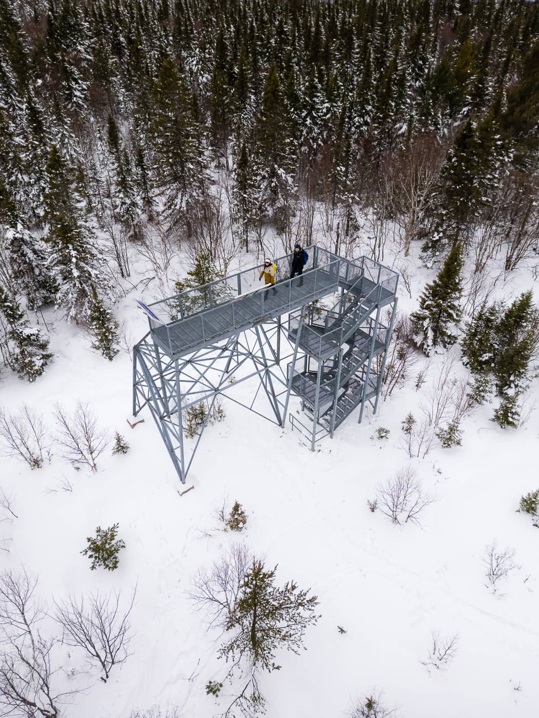 Ce matin, on quitte le Témiscamingue et on prend la route vers Rouyn-Noranda où je vous propose un arrêt aux Collines Kékéko. Il s’agit d’un réseau de 43 km de sentiers de randonnée que l’on peut parcourir en raquette durant l’hiver. En fonction des sentiers empruntés, vous pourrez vous rendre à des lacs où faire un pique-nique, différents points de vue et même une tour d’observation tout en haut des collines. De là, vous aurez une vue sur la région et pourrez même apercevoir la ville de Rouyn-Noranda au loin.