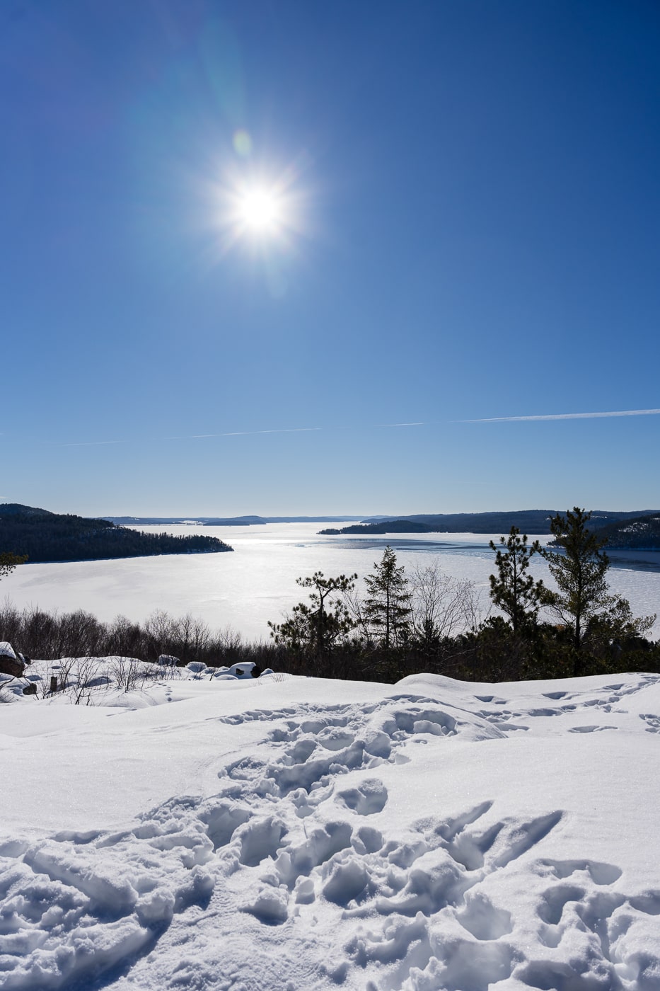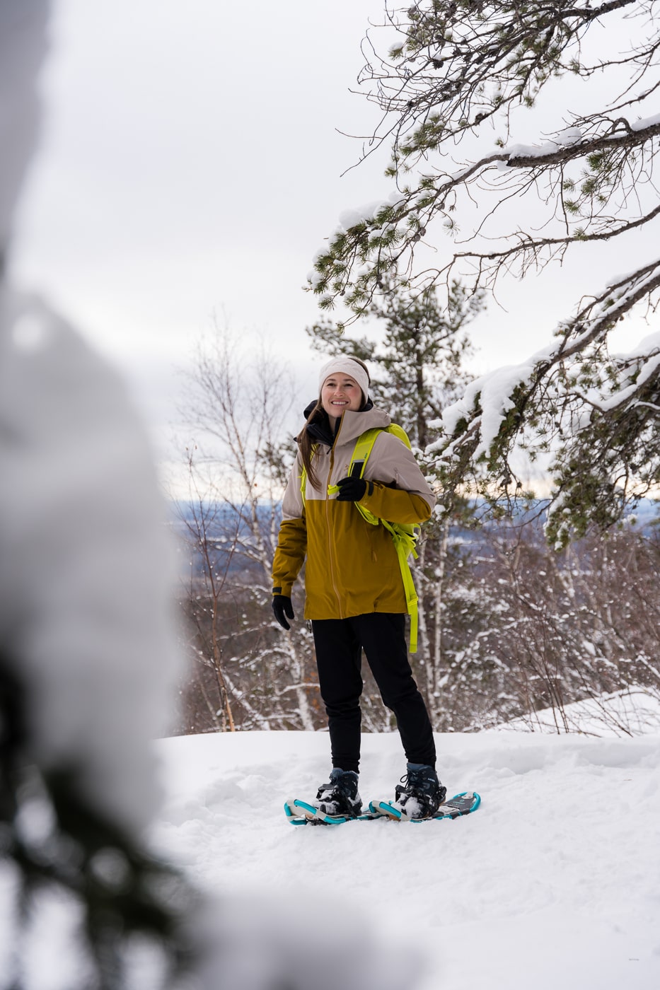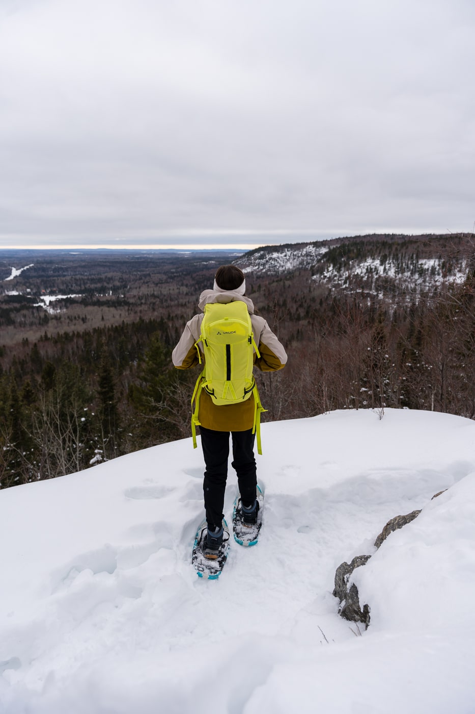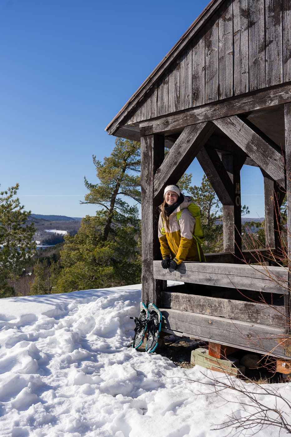 Un road trip hivernal en Abitibi-Témiscamingue ne serait pas complet sans une randonnée dans le parc national d’Aiguebelle, un superbe terrain de jeu pour les adeptes du plein air! J’avais beaucoup aimé cet endroit lors de ma première visite en été il y a quelques années. J’avais donc bien hâte de le redécouvrir en hiver! Sa forêt de conifères donne l’impression d’être au cœur d’une nature sauvage et intouchée. Et c’est aussi ça l’avantage d’un road trip hivernal en Abitibi-Témiscamingue : on peut s’y retrouver complètement seul(e) au milieu de la nature! De notre côté, on a opté pour le sentier Le Loup qui mène à un joli point de vue sur les environs!