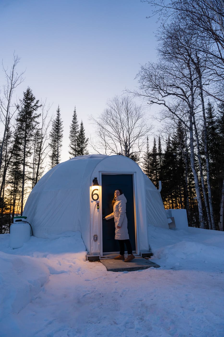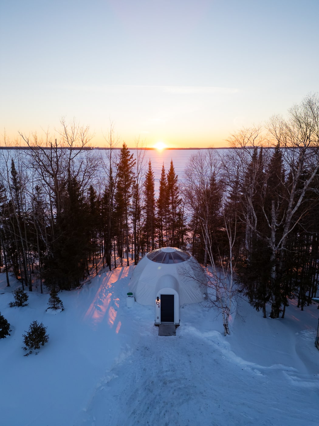 Pour conclure ce road trip hivernal en Abitibi-Témiscamingue en beauté, on a dormi dans un magnifique dôme à la Station Boréale à Val-d’Or. Situé sur l’île Siscoe aux abords du lac De Montigny, cet endroit propose un cadre vraiment magique pour une dernière nuit dans la région. On a d’ailleurs eu droit à un coucher de soleil à couper le souffle! Tout équipé et bien confortable, cet hébergement se situe à proximité de la ville, mais suffisamment en retrait pour se sentir en nature! On a adoré ce dernier arrêt à notre itinéraire.