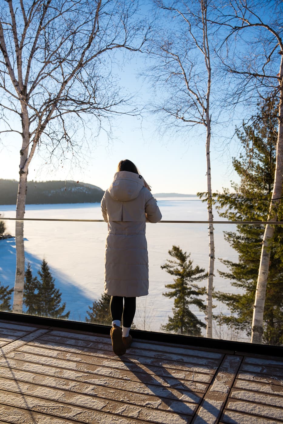 Le lendemain, après un bon déjeuner au bistro sur place, on a profité des sentiers de raquette accessibles directement depuis La Bannik. Ceux-ci mènent à différents points de vue et belvédères sur le lac. À notre avis, ça complète à merveille un séjour à La Bannik est on y serait bien restés quelques jours de plus pour profiter pleinement du site, mais une belle rencontre nous attendait!