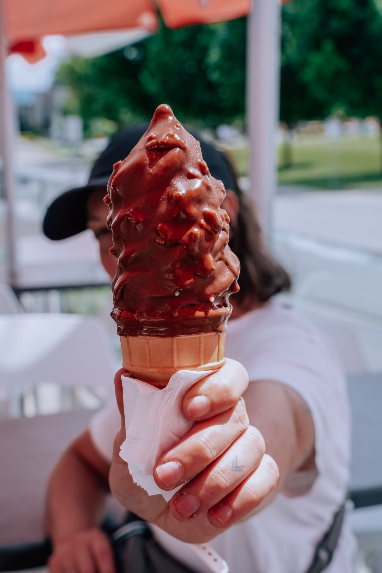 Et enfin, pour ceux qui aiment la crème glacée, je vous recommande un arrêt sucré à la Fromagerie Victoria pour vous rafraîchir avec l’une des nombreuses options glacées offertes sur place. Vous pourrez prendre le temps de déguster votre dessert sur leur terrasse avec votre fidèle compagnon.